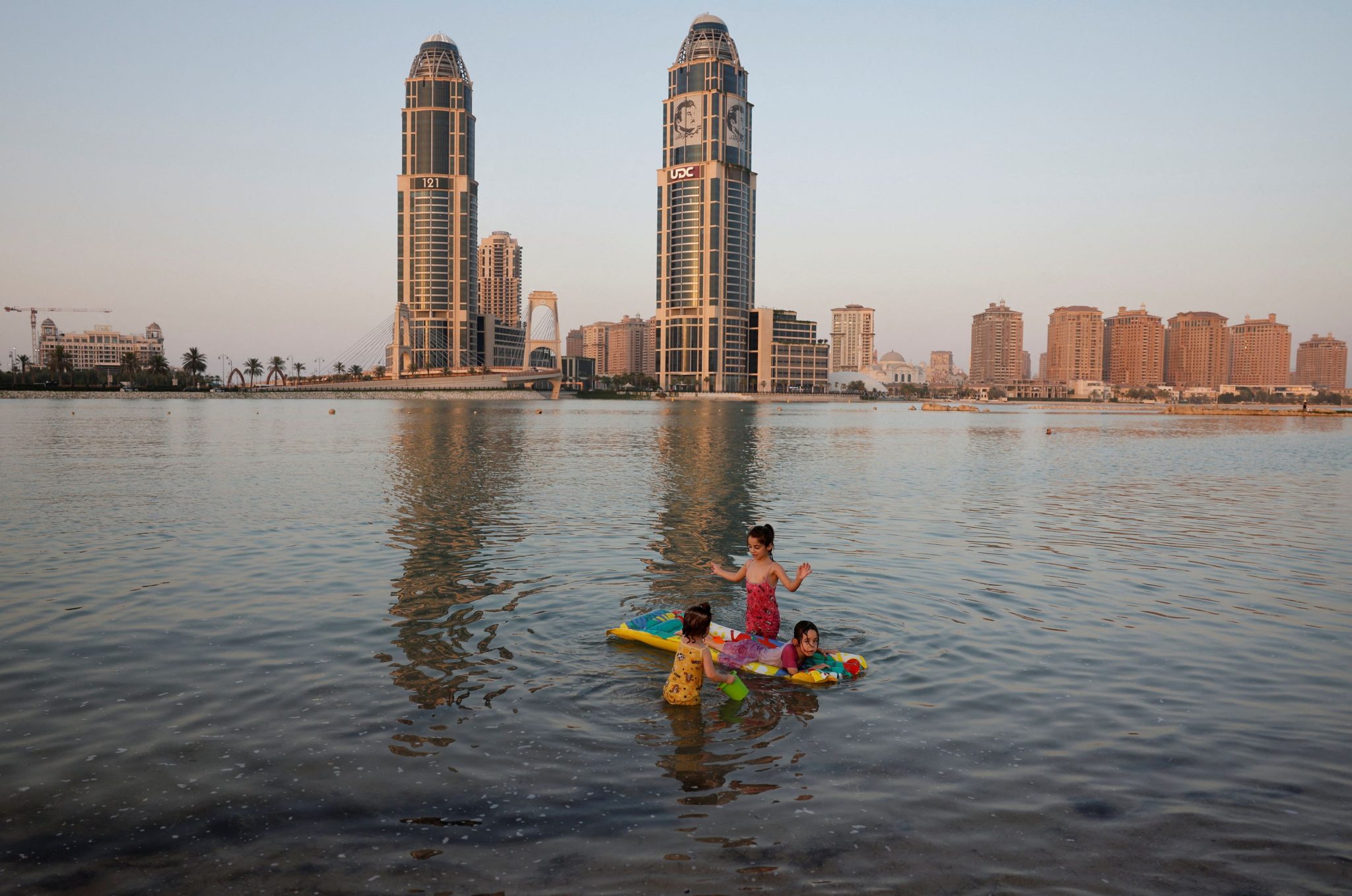 Άνθρωποι απολαμβάνουν το χρόνο τους στη θάλασσα στην παραλία Al-Qatifiyah μια ζεστή μέρα, στη Ντόχα του Κατάρ