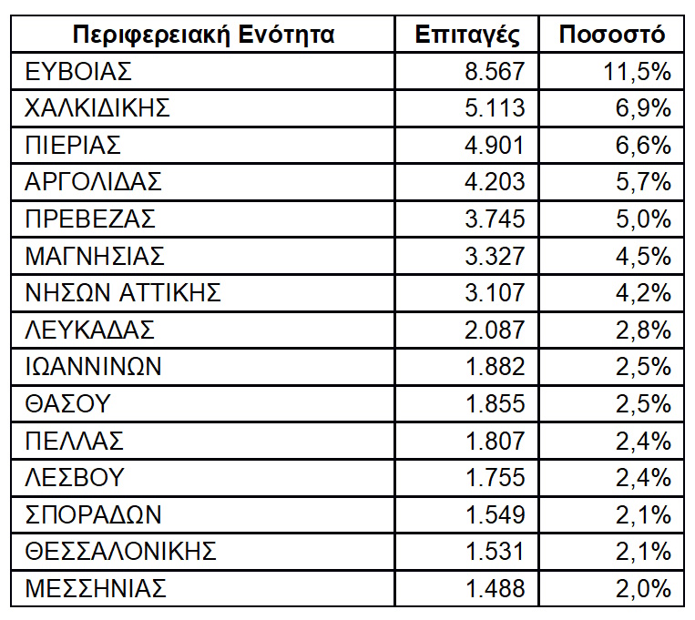 Ενδεικτικά, οι 15 περιφερειακές ενότητες με τον μεγαλύτερο αριθμό ενεργοποιημένων επιταγών τον Ιούνιο: