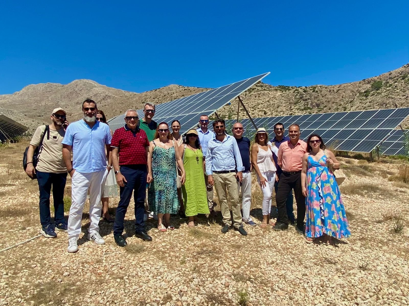 Η επίσκεψη ξεκίνησε από το φωτοβολταϊκό πάρκο της Χάλκης, το οποίο, με παραγωγή 1 MW καθαρής ενέργειας, καλύπτει το σύνολο των ενεργειακών αναγκών του νησιού, αποτελώντας παράδειγμα ενεργειακής αυτάρκειας.