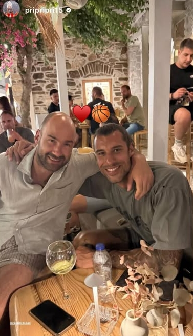 Οι δυο θρύλοι του μπάσκετ φάνηκαν πολύ χαρούμενοι, με τον Πρίντεζη στη φωτογραφία που ανέβασε με τον προπονητή της Μονακό να βάζει μια κόκκινη καρδούλα και μια μπάλα του μπάσκετ.