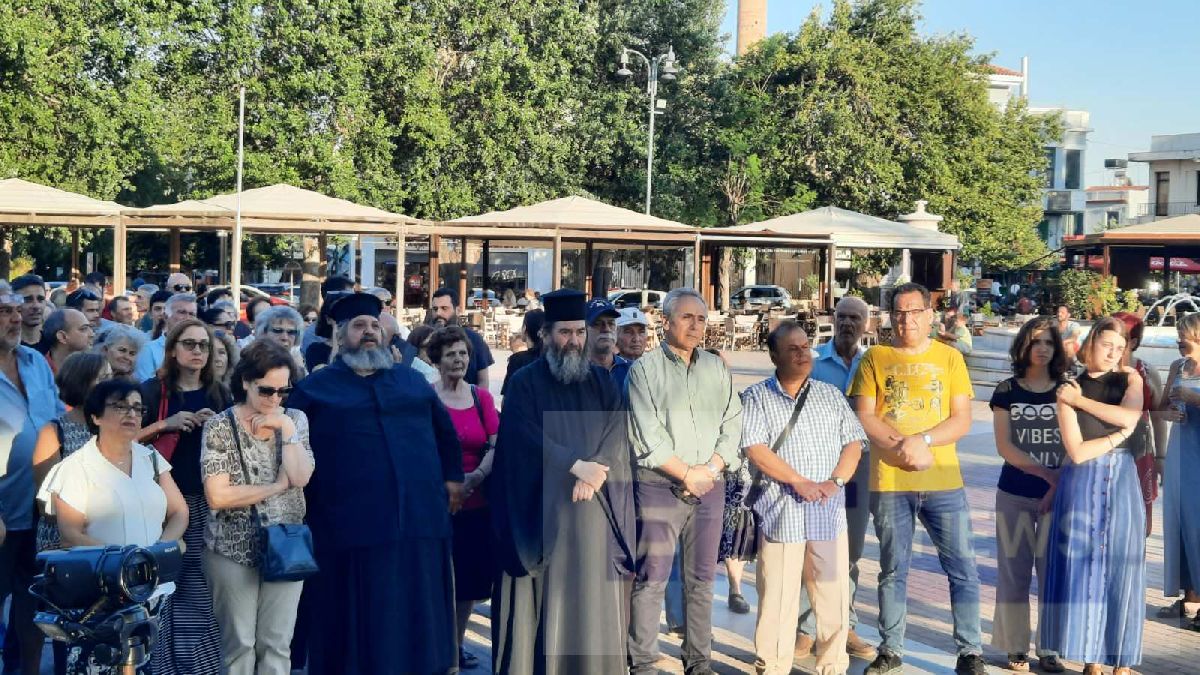 Περί τα 150 άτομα συμμετείχαν στη συγκέντρωση συμπαράστασης του Χιώτη στην καταγωγή πατέρα Αντωνίου Παπανικολάου, που έγινε γνωστή μέσω των μέσων κοινωνικής δικτύωσης.