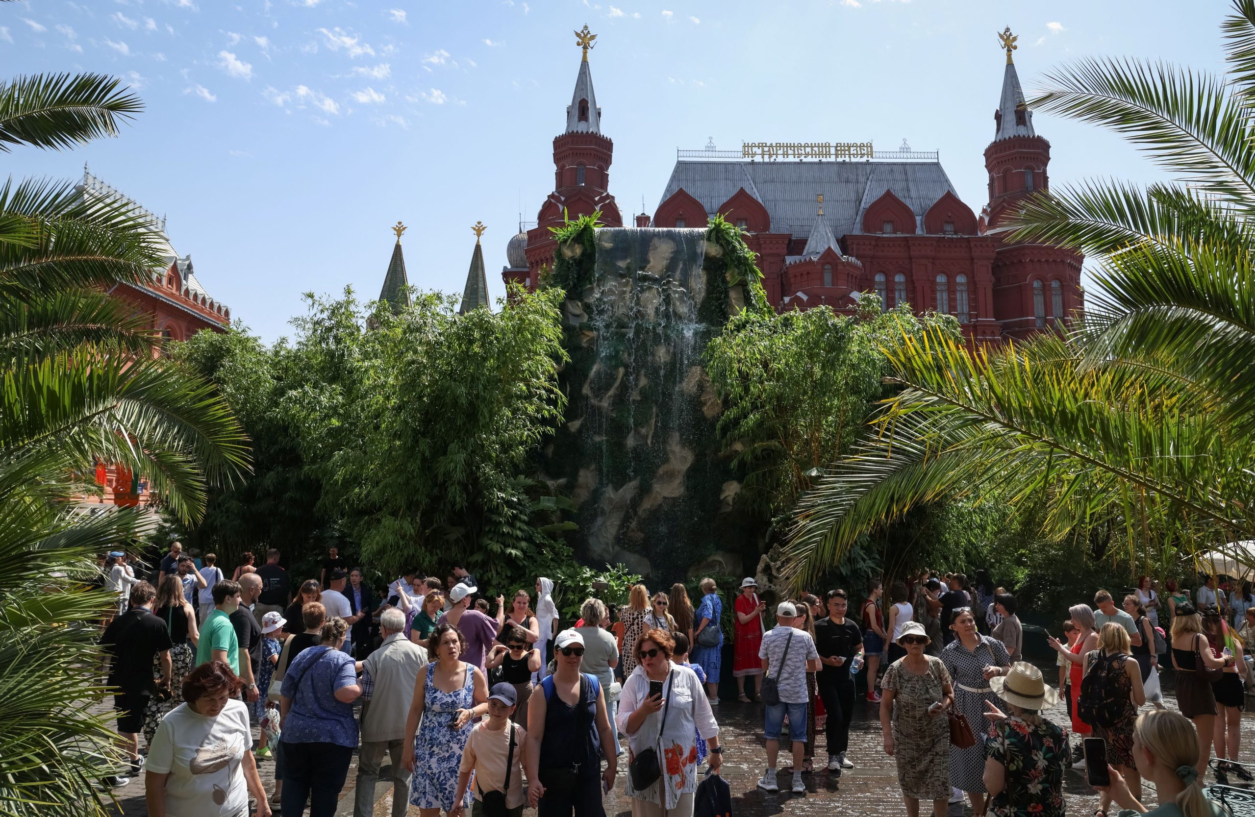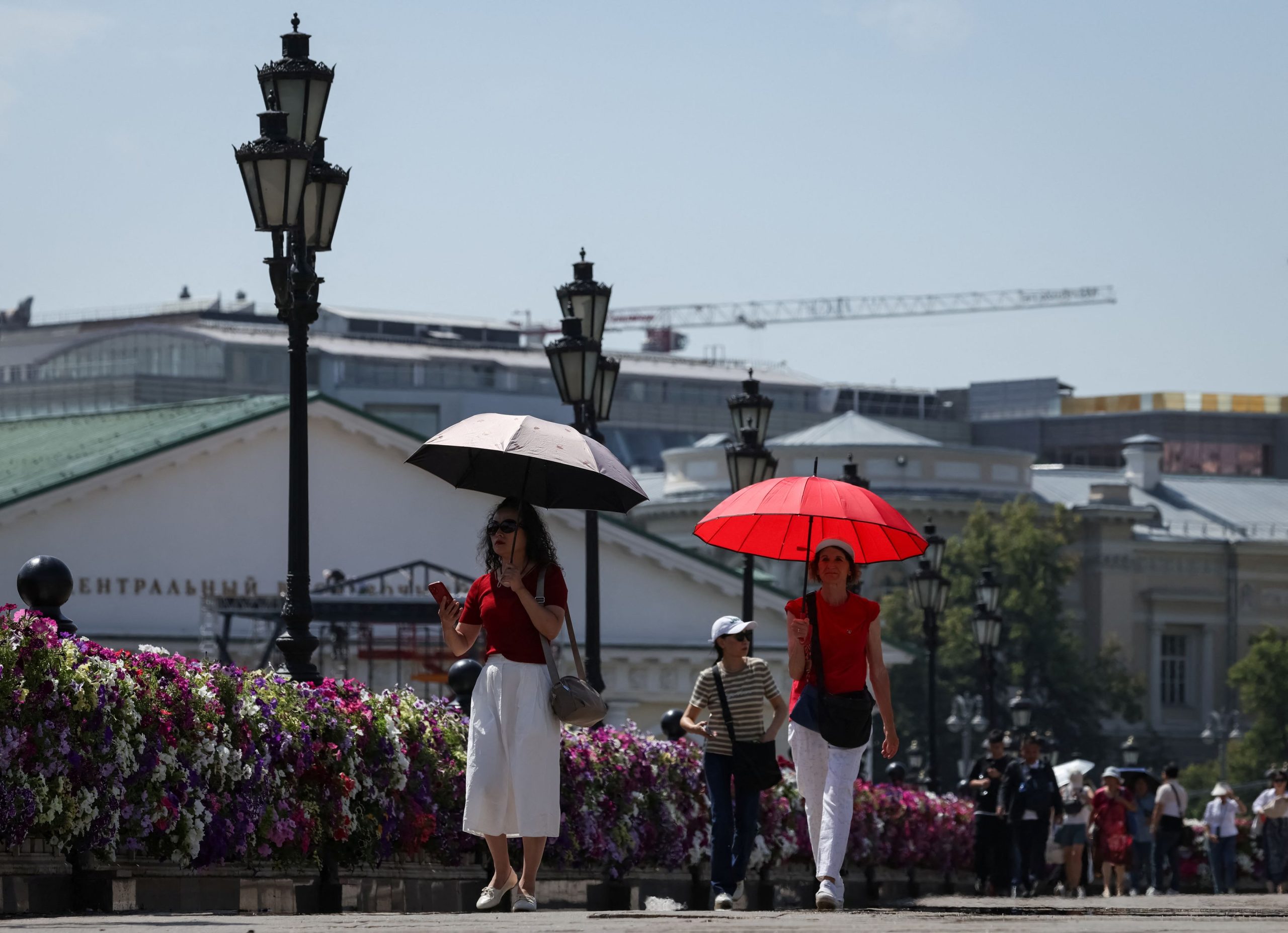 Από τις αρχές της εβδομάδας, όταν εγκαταστάθηκε ο καύσωνας στη Μόσχα, πολλοί κάτοικοι έφυγαν για τα εξοχικά τους στα προάστια ή αναζητούν λίγη δροσιά στα πάρκα και τα σιντριβάνια της πόλης.