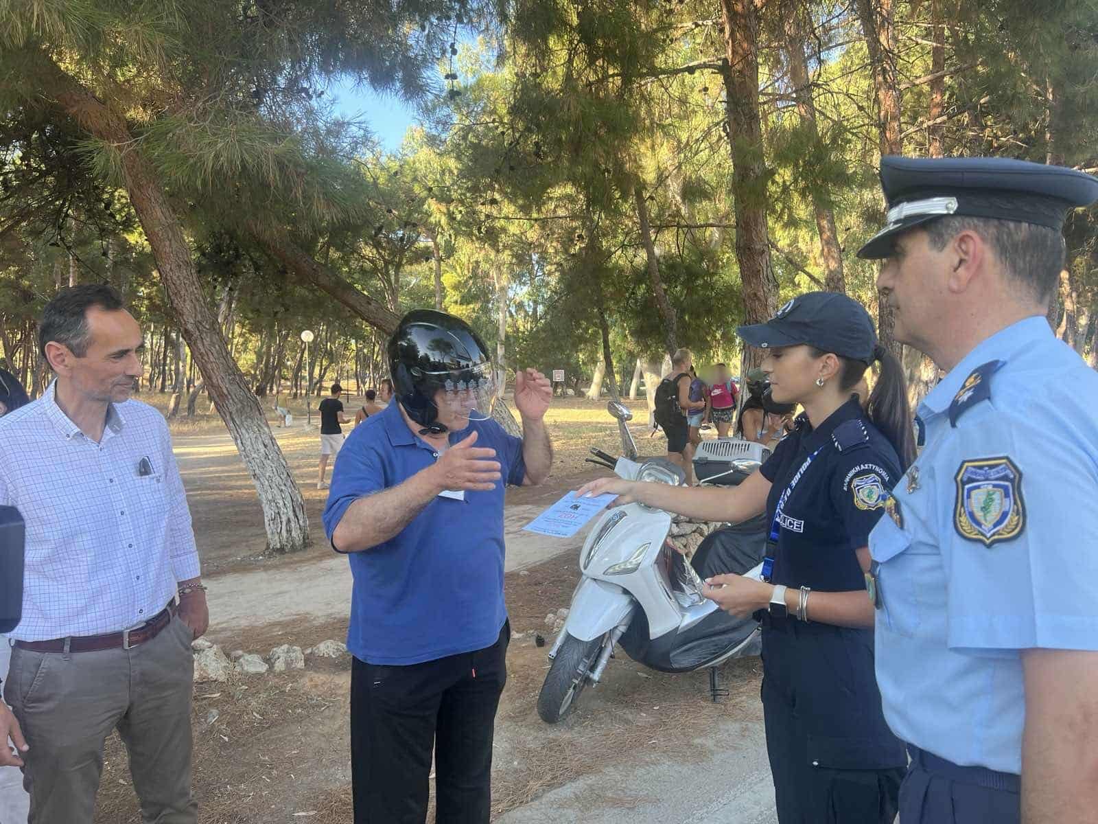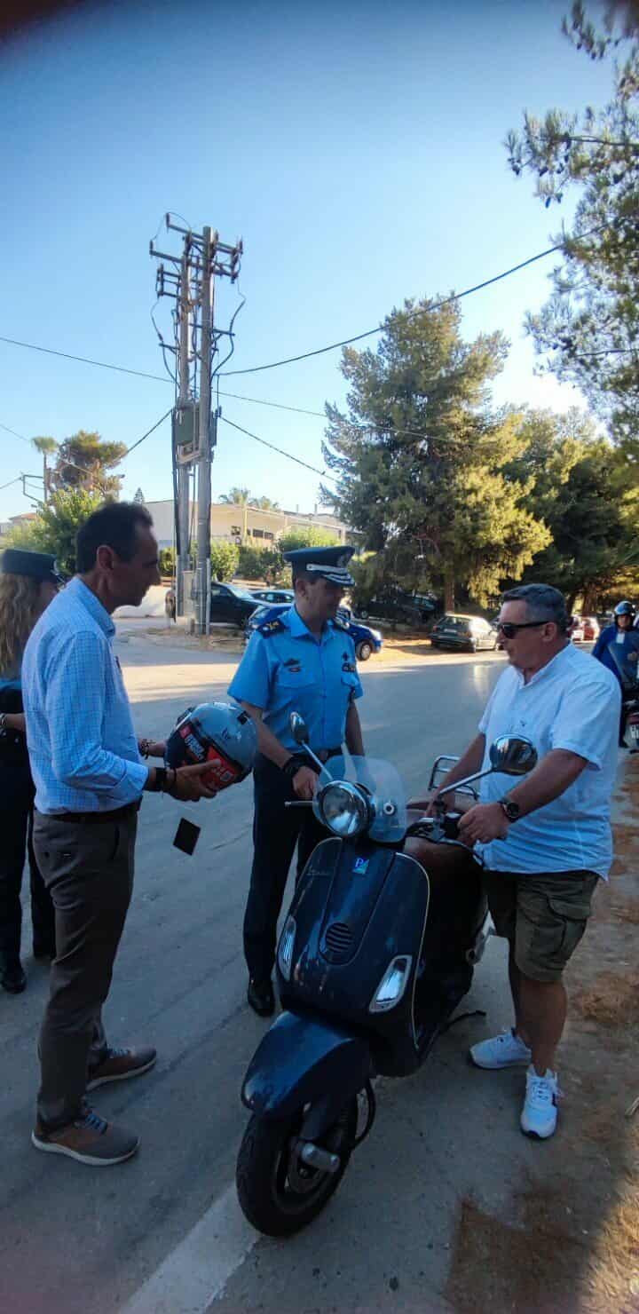 Προστατευτικά κράνη και ενημερωτικά φυλλάδια διανεμήθηκαν σε οδηγούς και συνεπιβάτες δίκυκλων οχημάτων.