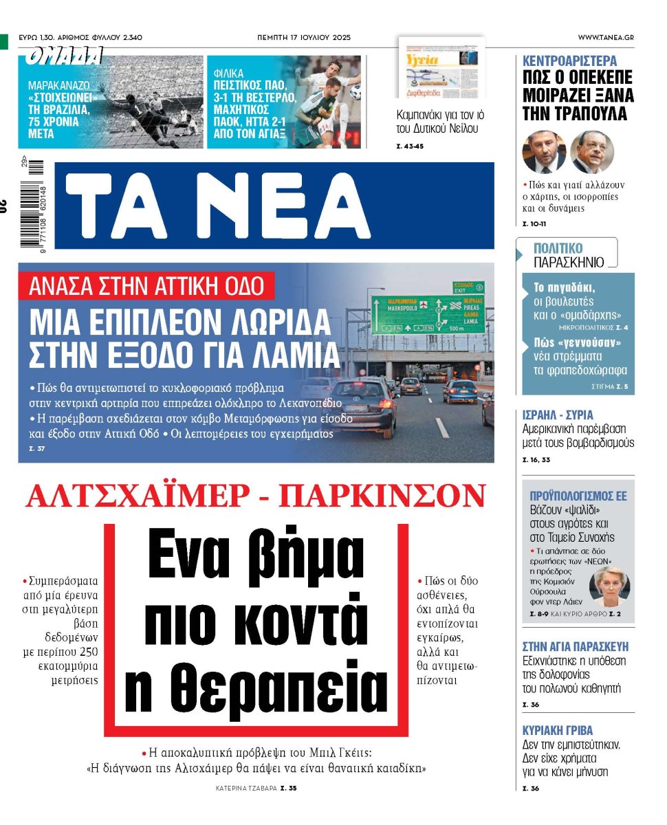Στα «ΝΕΑ» της Πέμπτης: Ενα βήμα πιο κοντά η θεραπεία