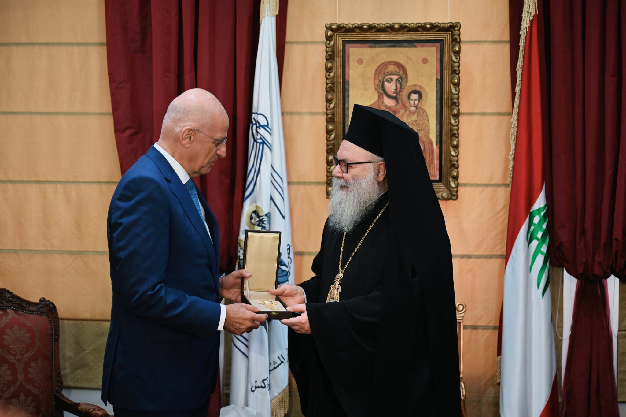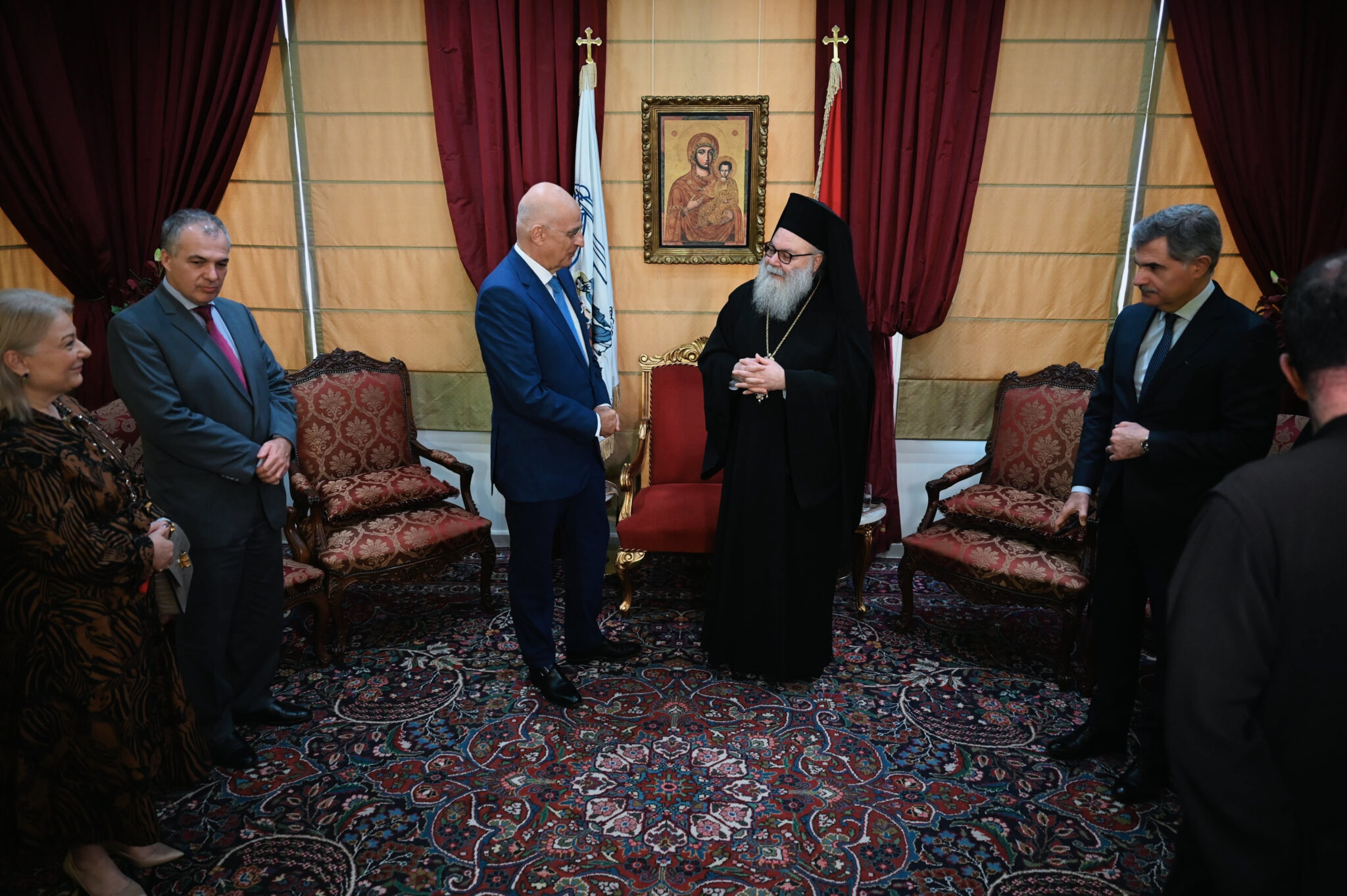 Προηγήθηκε συνάντηση του κ. Δένδια με τον Πατριάρχη Αντιοχείας Ιωάννη στο Πατριαρχείο, όπου συζητήθηκε το θέμα των επιθέσεων κατά των χριστιανών στη Μέση Ανατολή.