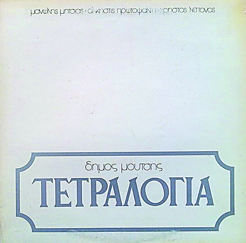Ο Δήμος Μούτσης παρουσιάζει στην «Τετραλογία», λίγο πριν από την εκπνοή του 1975, δέκα ποιήματα τεσσάρων σημαντικών δημιουργών: του Κ. Καβάφη, του Γ. Σεφέρη, του Κ. Καρυωτάκη και του Γ. Ρίτσου. Το έργο ήταν έτοιμο από το 1973 κι επρόκειτο να ηχογραφηθεί με τη Βίκυ Μοσχολιού και τον Δημήτρη Ψαριανό, οι οποίοι το παρουσίασαν για πρώτη φορά στον Ζυγό της Πλάκας. Τελικά τα τραγούδια μοιράζονται ο Μανώλης Μητσιάς («Κι αν ο αγέρας φυσά», «Πες της το μ’ ένα γιουκαλίλι»), ο αείμνηστος Χρήστος Λεττονός («Πρέβεζα», «Ιδανικοί αυτόχειρες») και η Αλκηστη Αττικιουζέλ (δηλαδή η Πρωτοψάλτη – «Η πόλις», «Είναι παλιό το λιμάνι»).