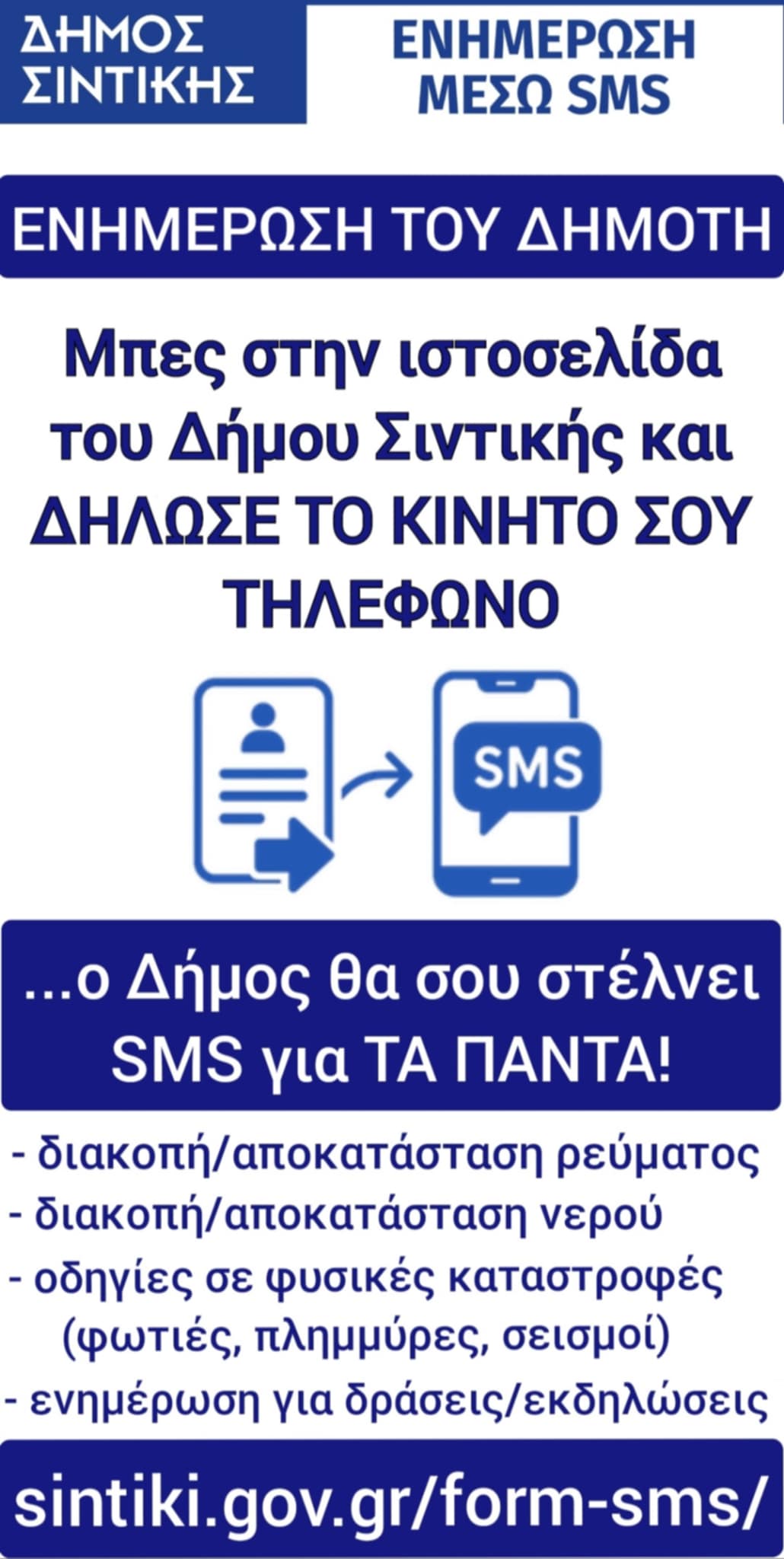 Δήμος Σιντικής: Υπηρεσία αποστολής sms για την άμεση ενημέρωση των Δημοτών
