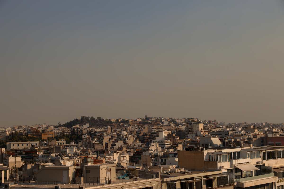 Η ατμόσφαιρα είναι αποπνικτική, ενώ η μυρωδιά του καμένου είναι αισθητή σε πολλές περιοχές της Αττικής και η ορατότητα παραμένει μειωμένη.