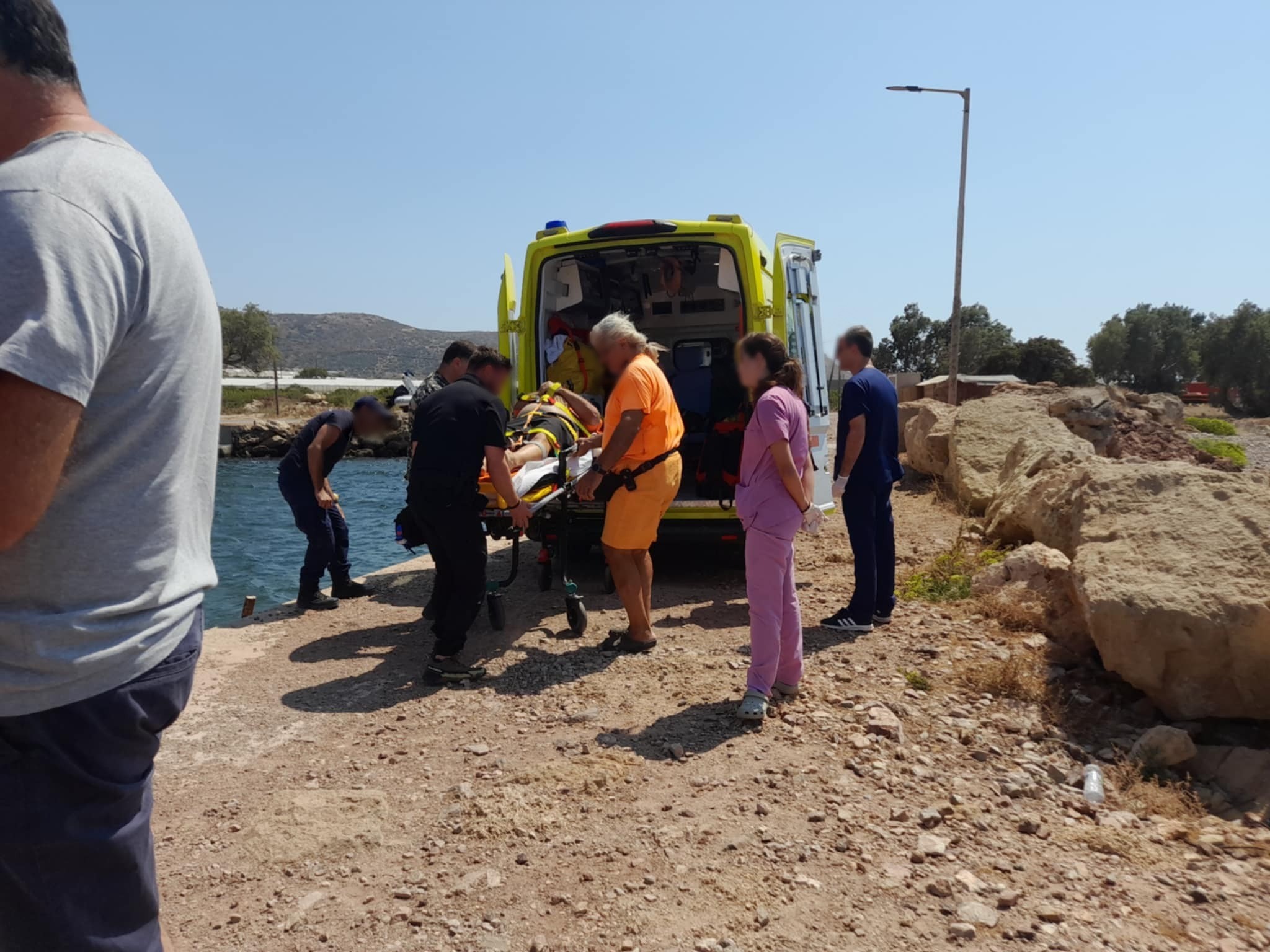 Για την μεταφορά του άτυχου άνδρα, από το σημείο που εντοπίστηκε χωρίς τις αισθήσεις του, χρησιμοποιήθηκε βάρκα, με την οποία οδηγήθηκε στα Φαλάσαρνα και από εκεί, με ασθενοφόρο του ΕΚΑΒ, στο Κέντρο Υγείας Κισάμου.
