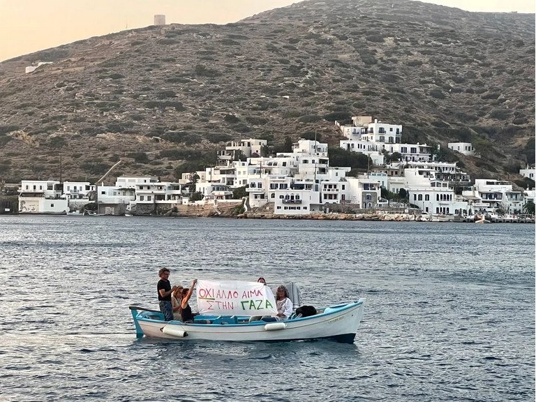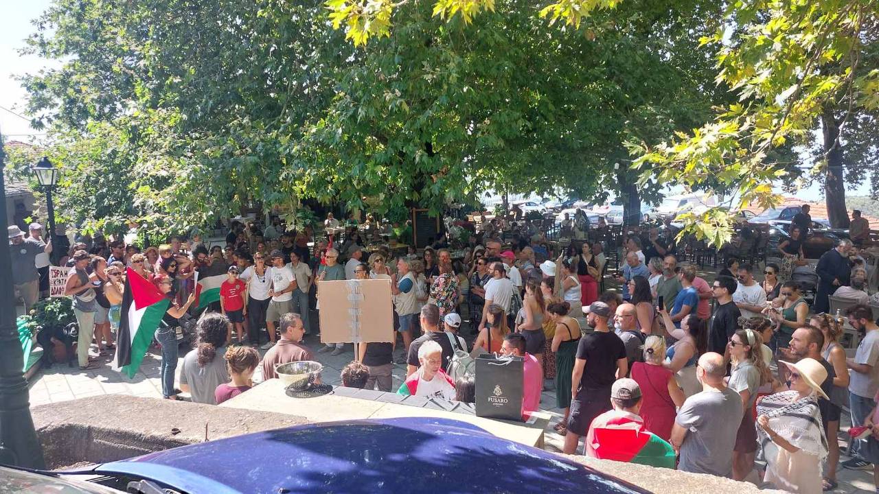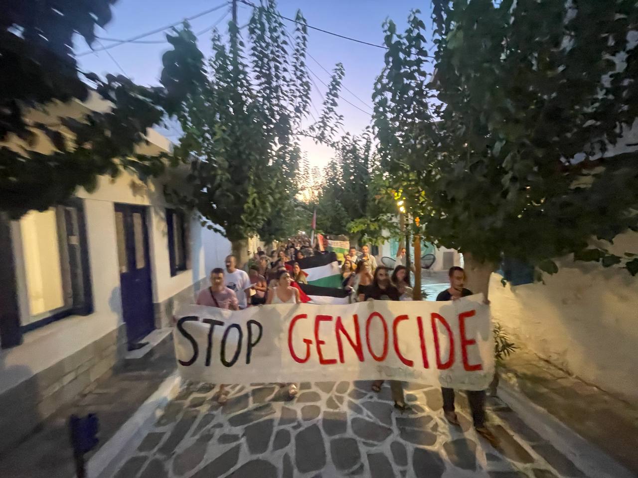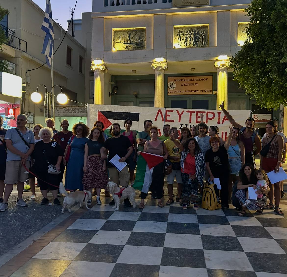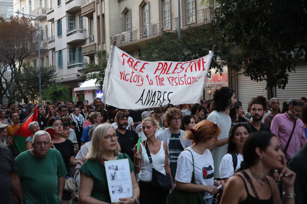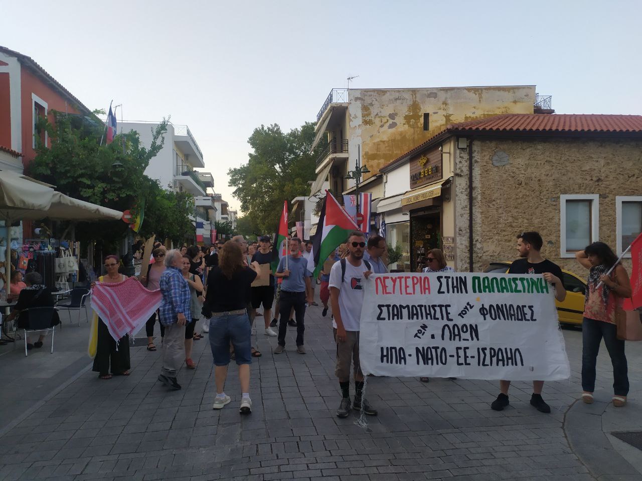 Με συνθήματα όπως «Λευτεριά στην Παλαιστίνη», «Καμία συνεργασία με το Ισραήλ», «Η αλληλεγγύη δεν ποινικοποιείται», «Stop Genocide», «Όχι άλλο αίμα στη Γάζα» και άλλα, πολίτες έδωσαν ένα ηχηρό μήνυμα αλληλεγγύης στον Παλαιστινιακό λαό, τη στιγμή που ο πρόεδρος του Ισραήλ Μπενιαμίν Νετανιάχου επιχειρεί να διασκεδάσει τις εντυπώσεις για την εν αναμονή -ολική- κατάληψη της Γάζας.