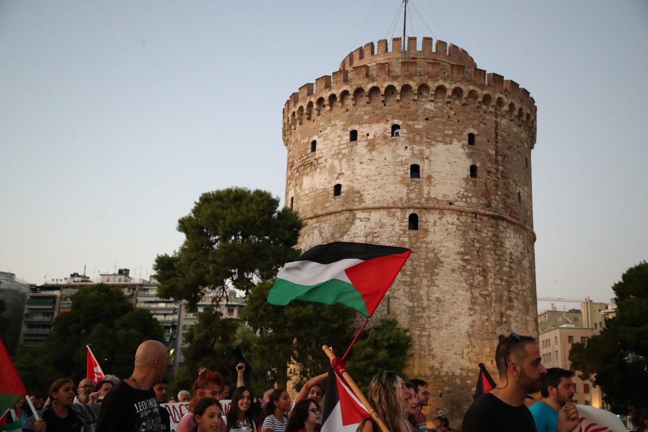 Με βασικό αίτημα την άμεση παύση των πολεμικών επιχειρήσεων από την κυβέρνηση Νετανιάχου και την απεμπλοκή της Ελλάδας από κάθε μορφή συμμετοχής στις συγκρούσεις, εκατοντάδες άτομα βγήκαν στους δρόμος της Θεσσαλονίκης αργά το απόγευμα της Κυριακής.