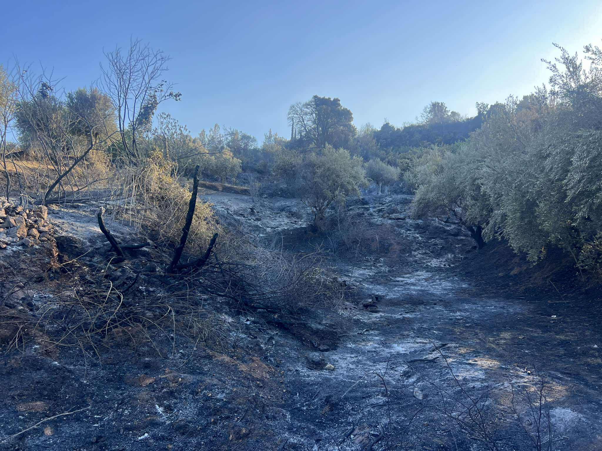 Οι φλόγες βρήκαν καύσιμη ύλη στο παρθένο δάσος, φτάνοντας και ξεπερνώντας σε ύψος τα 10 μέτρα, πέρασαν την πλαγιά και απείλησαν τα πρώτα σπίτια των Πετραλώνων.