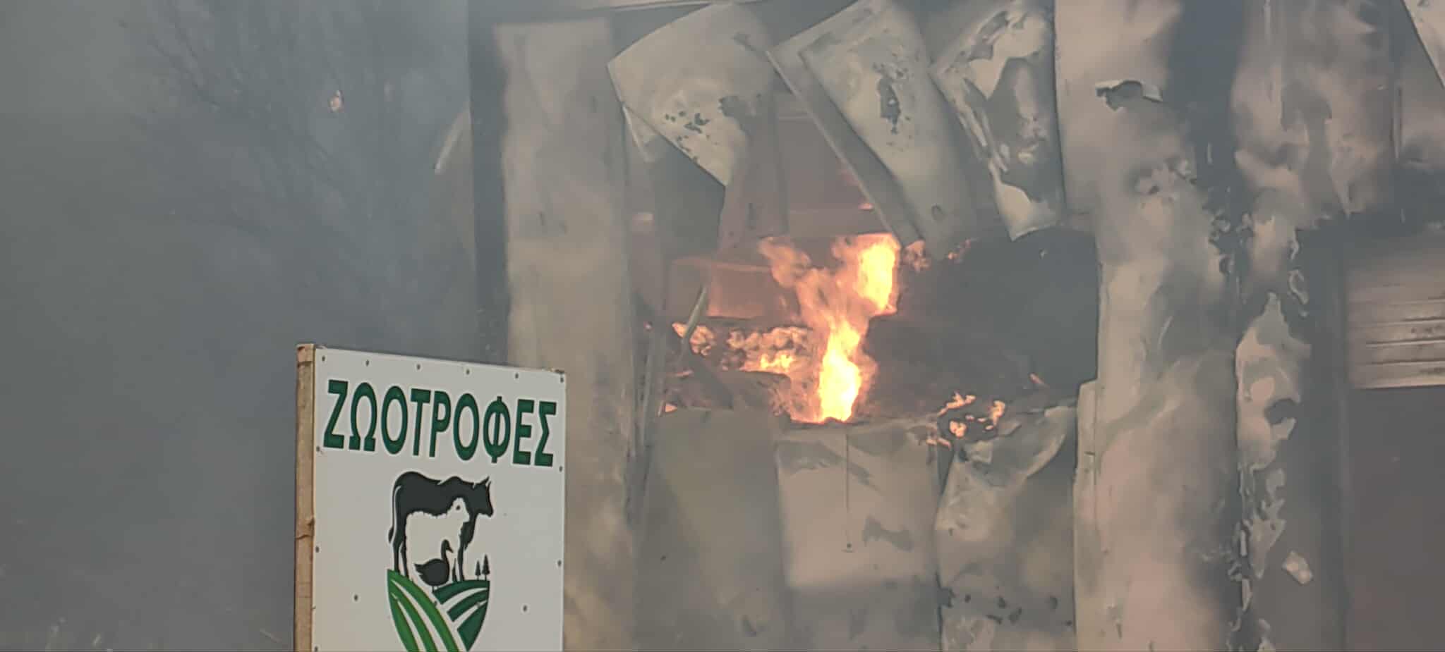 Στο Θεριανό Αχαΐας ο φακός της ΕΡΤ κατέγραψε επιχείρηση με ζωοτροφές να έχει παραδοθεί στις φλόγες.