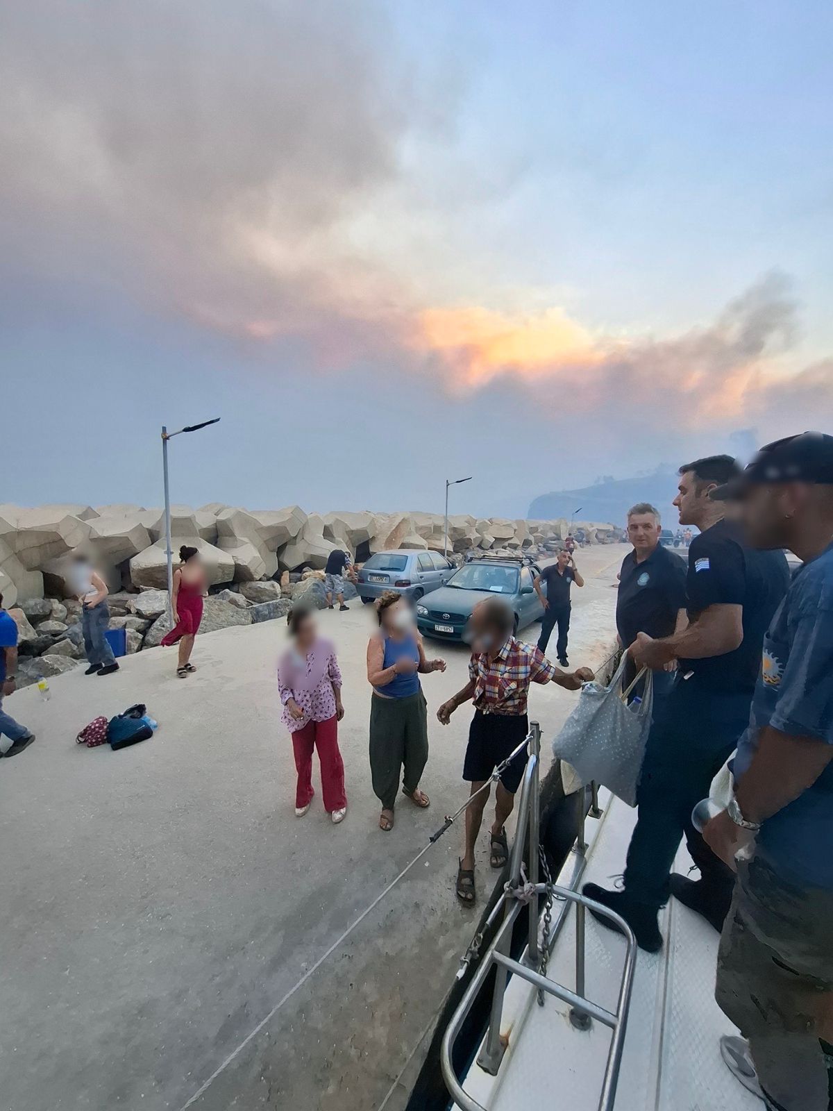 Δυνάμεις κατευθύνονται στην περιοχή με σκοπό να απομακρύνουν, με συνοδεία αστυνομικών, άτομα προς Πάτρα, ενώ παράλληλα παραμένουν σε ετοιμότητα πλοιάρια του λιμενικού και ιδιωτικά σκάφη, ώστε να παραλάβουν άτομα από θαλάσσης.