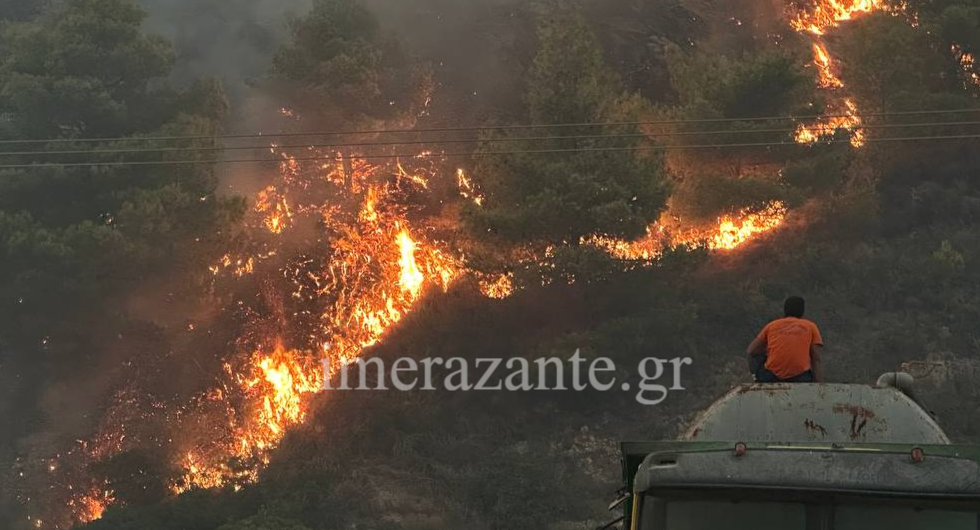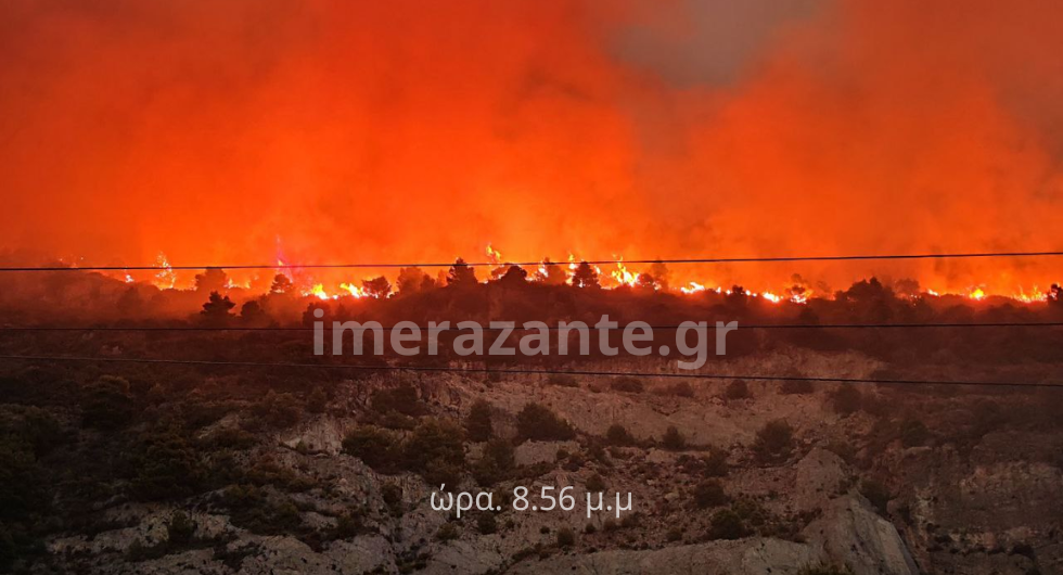 Ζάκυνθος: Μαίνεται η φωτιά στη Λιθακιά – Προς Μουζάκι και Παντοκράτορα τα πύρινα μέτωπα