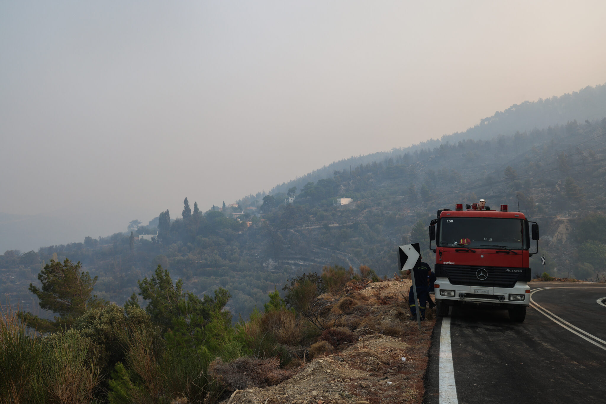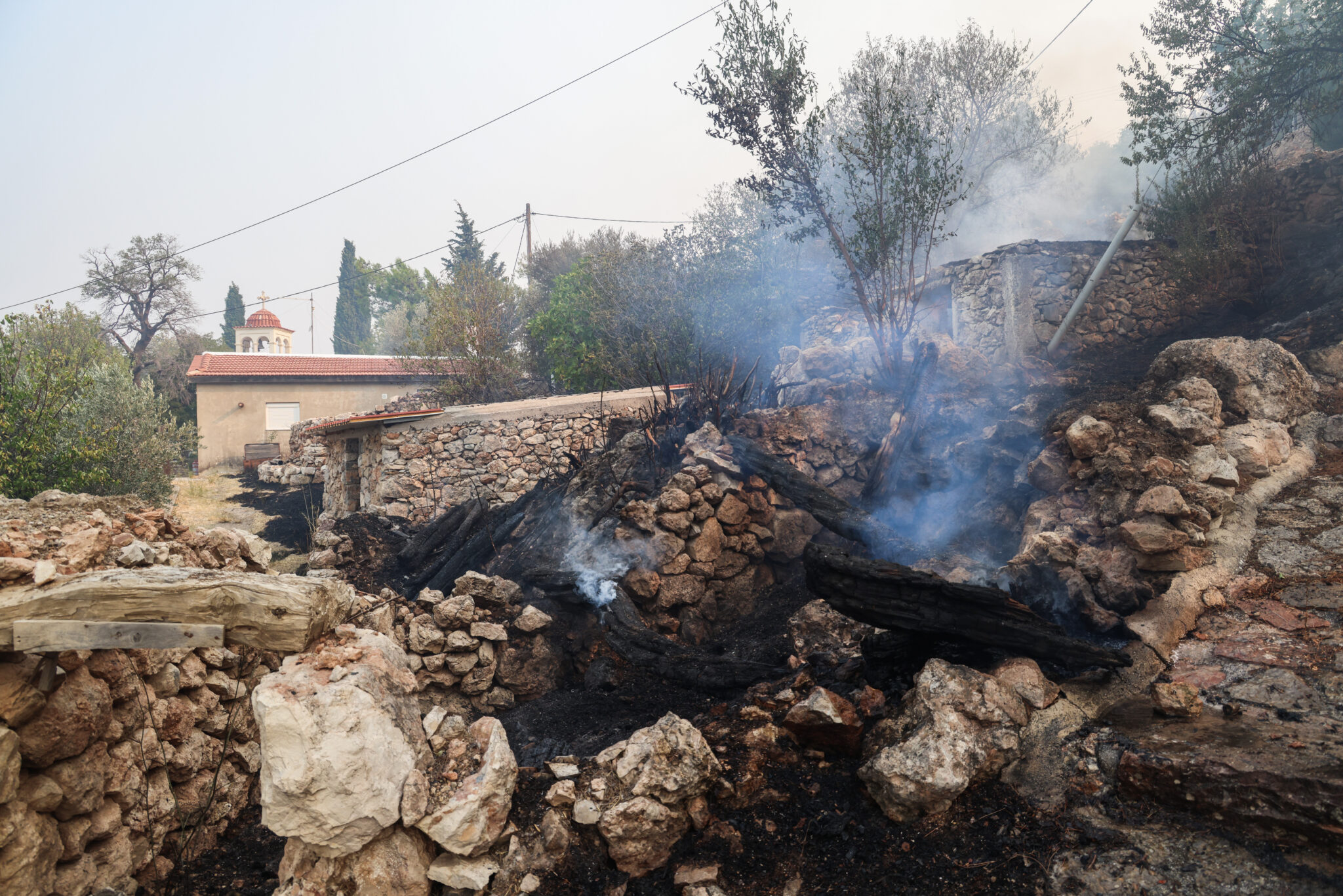 Οι διάσπαρτες εστίες που καίνε ακόμη βρίσκονται σε απόκρημνες περιοχές στις οποίες επιχειρούν επίγειες δυνάμεις της πυροσβεστικής. «Οι λίγοι μόνιμοι κάτοικοι, στο χωριό Κηπιουριές, κατάφεραν και διέσωσαν τα σπίτια τους», συμπλήρωσε. Μαζί με τους εθελοντές παραμένουν σε ετοιμότητα και συνεργεία των ΟΤΑ με τις υδροφόρες. «Πρέπει να εκμεταλλευτούμε την άπνοια και να σβήσουν και οι τελευταίες φωτιές», πρόσθεσε.