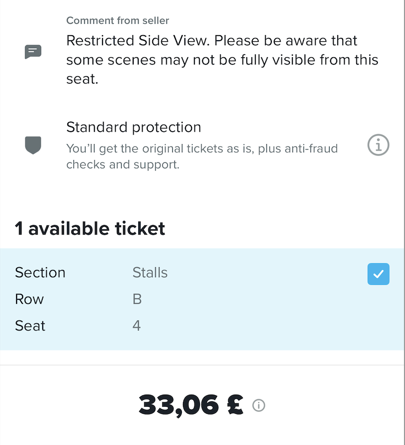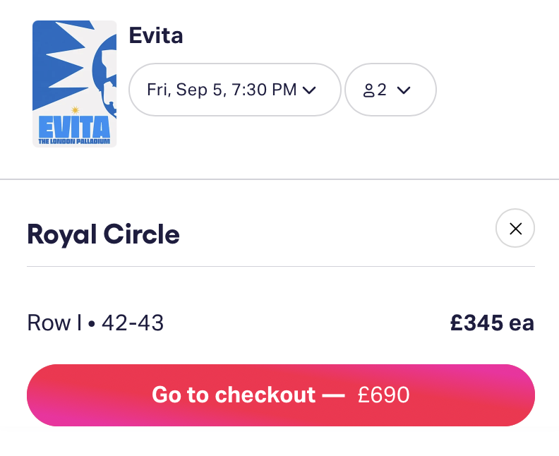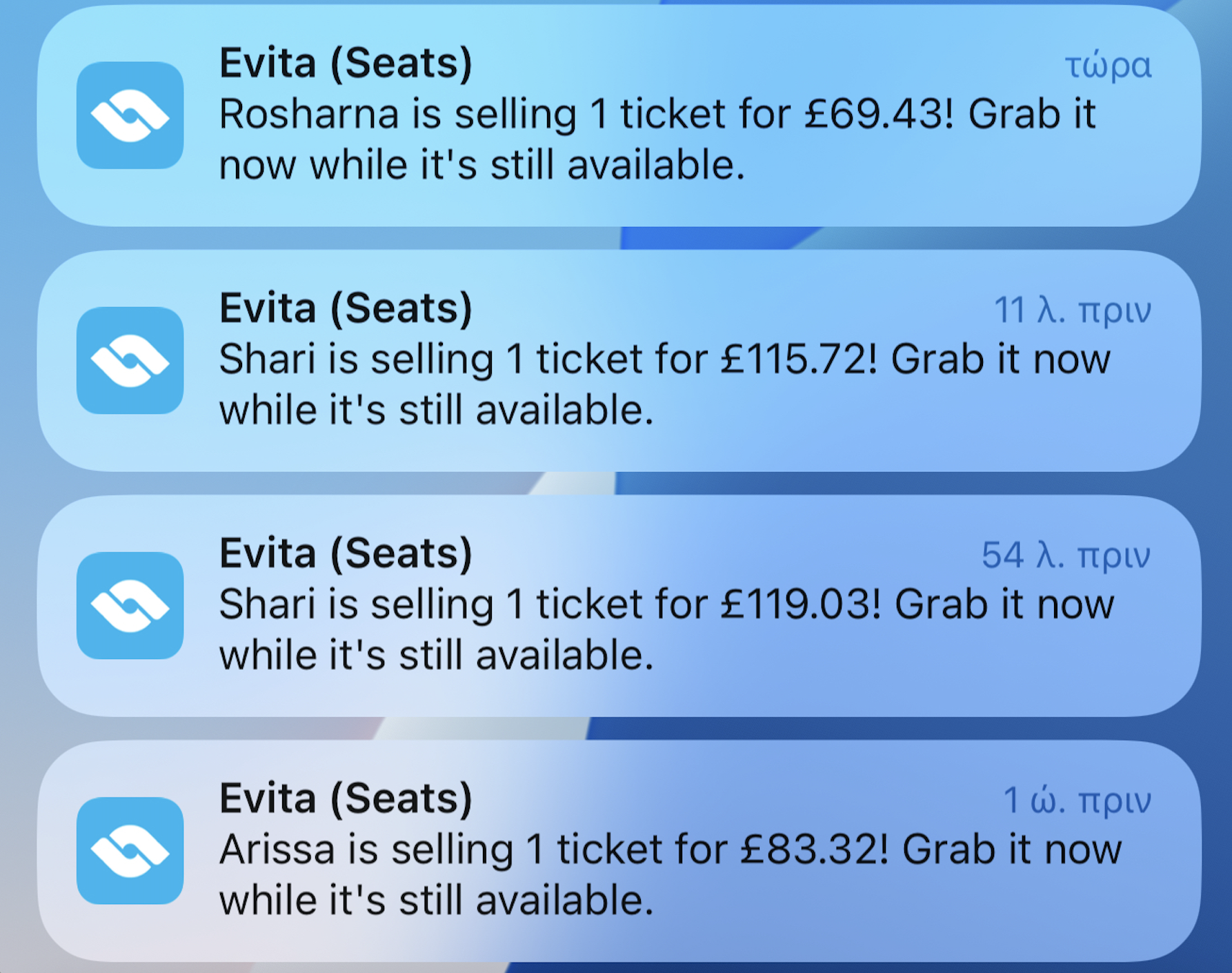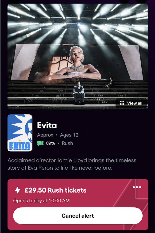 Στο TicketSwap μπορεί να βρεις εισιτήρια σε καλές τιμές, ειδικά λίγα λεπτά πριν την παράσταση από ανθρώπους που κόλλησαν στην κίνηση. Αν είσαι τυχερός, μπορεί να δεις την «Εβίτα» με λιγότερα απ’ ό,τι θα πλήρωνες για… δύο πακέτα fish and chips στο Soho.