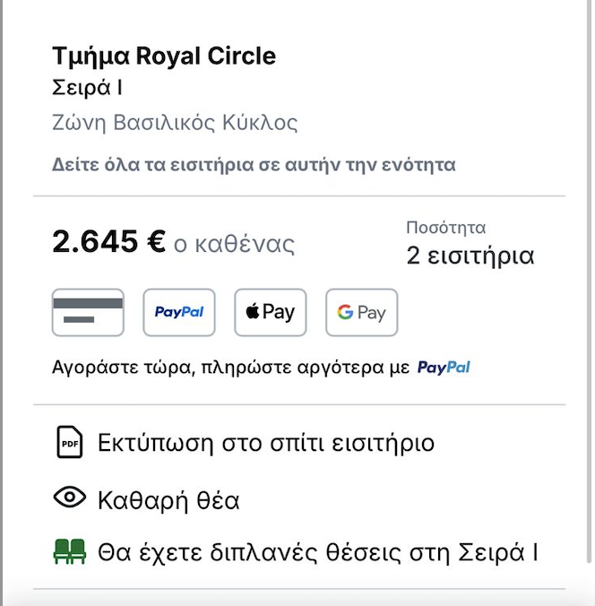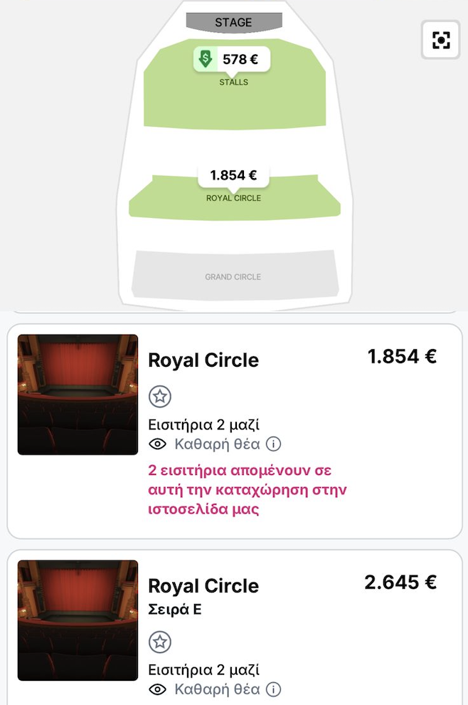 Αποφεύγουμε όμως τις μεγάλες εμπορικές resale πλατφόρμες. Οι πωλητές βάζουν υψηλές τιμές καθώς ο ενδιάμεσος παίρνει μεγάλο ποσοστό. Οι τιμές εκεί είναι τόσο ψηλές, ακόμα και ψιλότερες από τις νότες που χτυπάει η Ζέγκλερ στο τέλος της πρώτης πράξης.