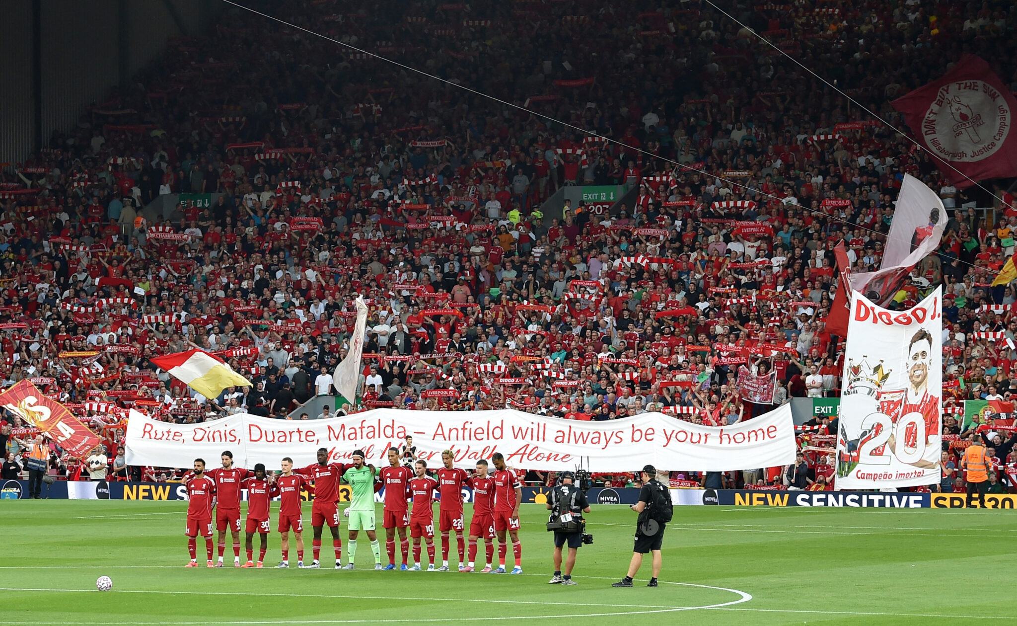 Οι οπαδοί της Λίβερπουλ δημιούργησαν ένα εντυπωσιακό κορεό για να τιμήσουν τη μνήμη του Ντιόγκο Ζότα στο Άνφιλντ και οι παίκτες του Σλοτ κράτησαν ενός λεπτού σιγή, πριν τη σέντρα της αναμέτρησης με την Μπόρνμουθ στην Premier League.