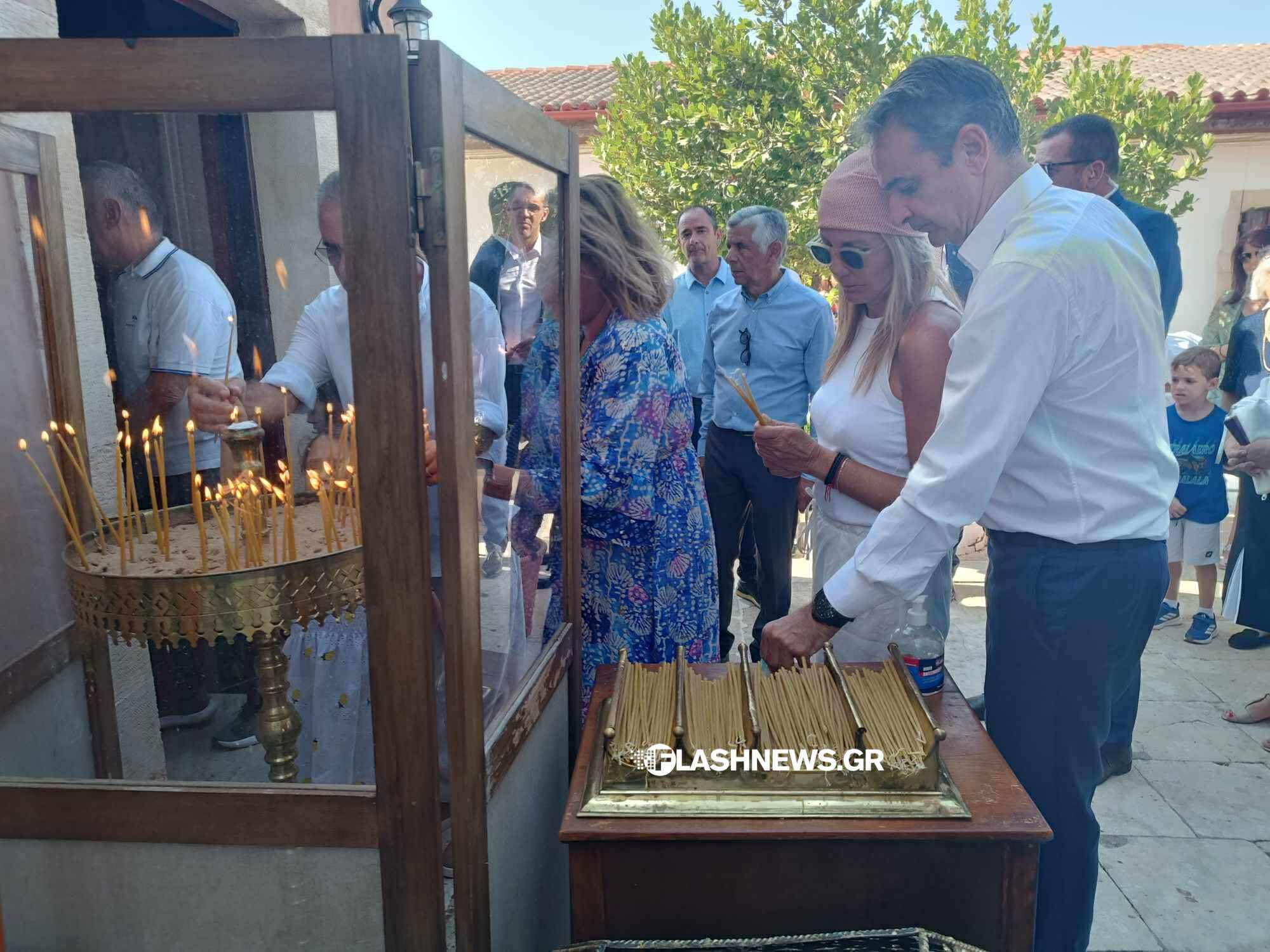 Ο πρωθυπουργός Κυριάκος Μητσοτάκης βρέθηκε στην Ιερά Μονή Τιμίου Προδρόμου, στις Κορακιές Χανίων, συνοδεία της συζύγου του, Μαρέβας.