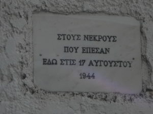 Όσοι δεν εκτελέστηκαν τους πήγαν στο Χαϊδάρι κι από εκεί στη Γερμανία. Οι Γερμανοί εκτέλεσαν κι ένα προδότη, τον Μπαστράνη, μέχρι κι αυτοί τον σιχάθηκαν. Έψαξαν τα σπίτια κι όποιον έβρισκαν κρυμμένο, τον εκτελούσαν επιτόπου στο δρόμο. Γι αυτούς τους εκτελεσμένους, κάνουμε κάθε χρόνο στις 17 Αυγούστου μια ειδική εκδήλωση, που τη λέμε «τα Στεφανώματα». Δηλαδή στον τόπο των εκτελέσεων, καταθέτουμε στεφάνι και λέμε και δύο λόγια. Υπήρχε και κόσμος που κατάφερε να φύγει από την περιοχή και βγήκε στην παρανομία».
