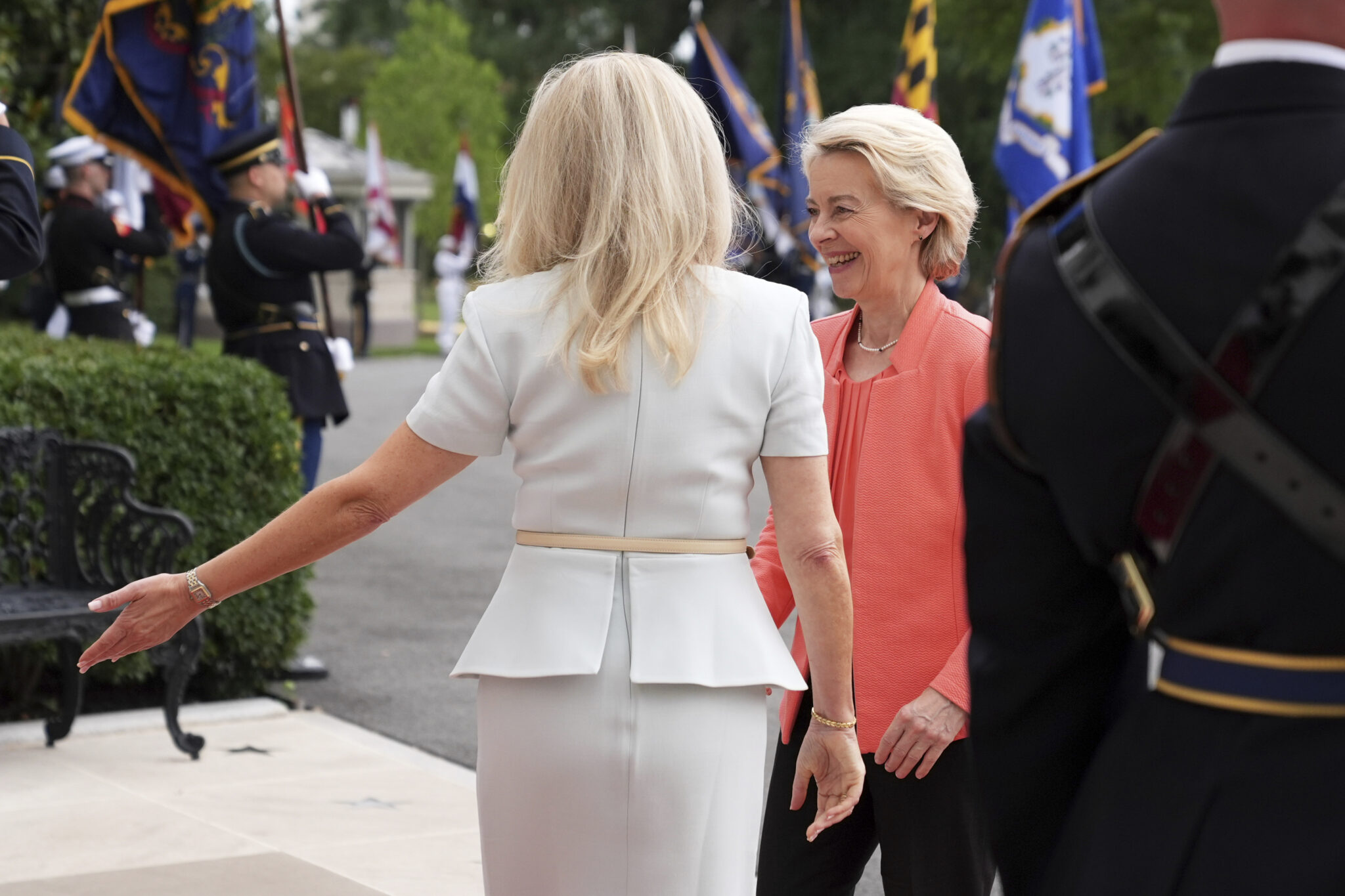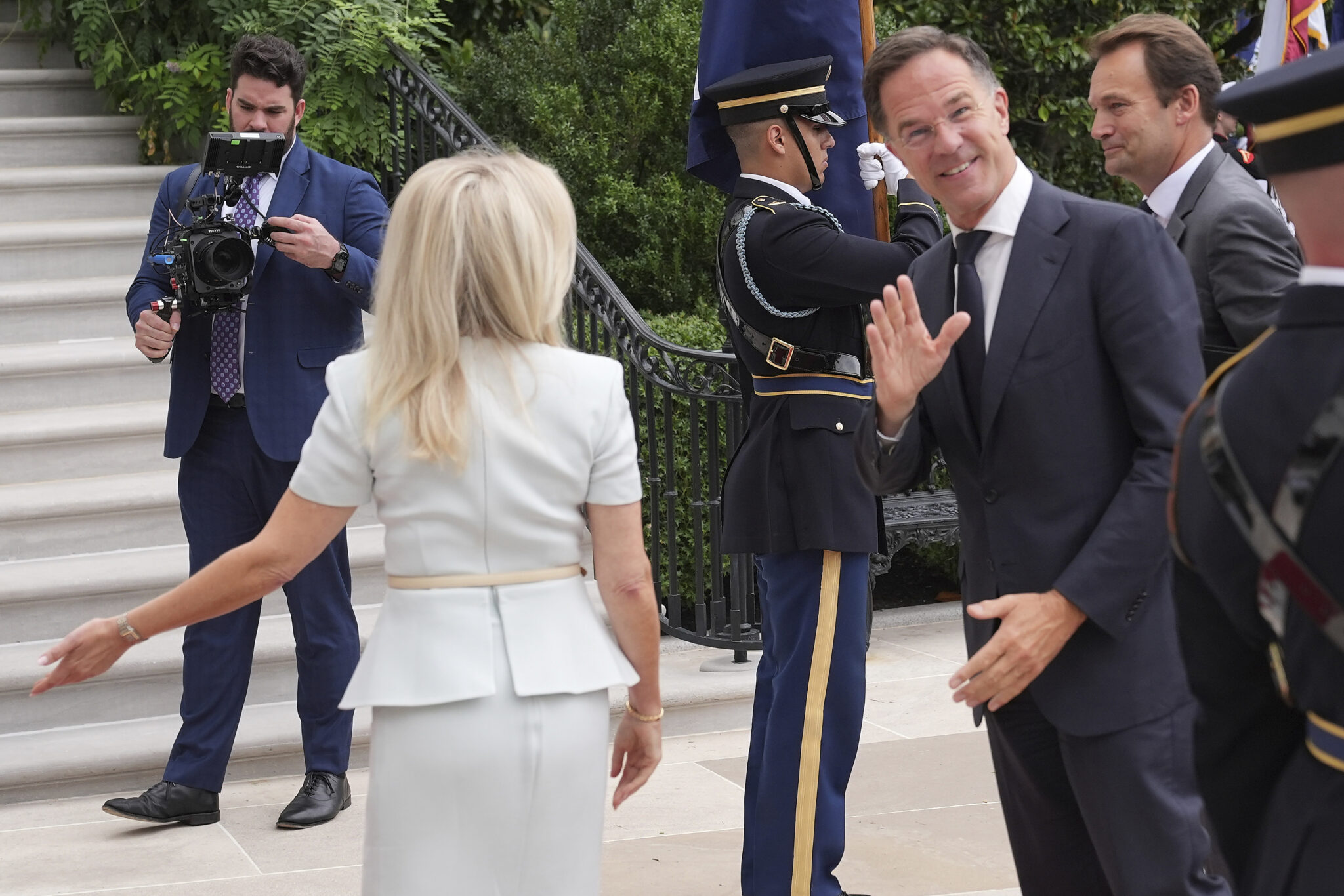 Τους ηγέτες υποδέχθηκε η επικεφαλής του πρωτοκόλλου Μόνικα Κρόουλι.