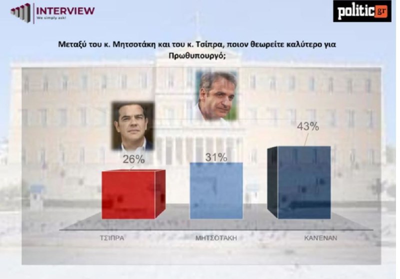 Δημοσκόπηση Interview: Ανεβαίνει ο Τσίπρας χωρίς κόμμα – Πέφτουν τα ποσοστά ΝΔ και Κυριάκου Μητσοτάκη