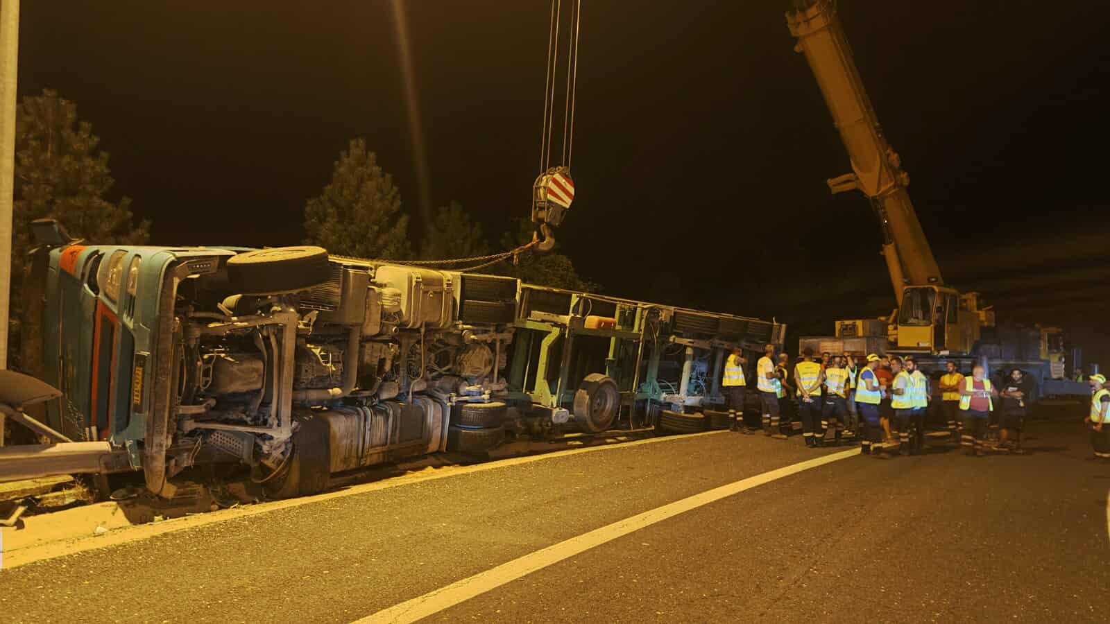Το βαρύ όχημα εξετράπη της πορείας του, βγήκε εκτός δρόμου με αποτέλεσμα ο οδηγός της νταλίκας να τραυματιστεί, χωρίς να διατρέχει κάποιο κίνδυνο η υγεία του. Στο σημείο από χθες υπάρχουν γερανοφόρα οχήματα προκειμένου να απομακρύνουν την νταλίκα από το οδόστρωμα και να αποκατασταθεί η κυκλοφορία. Η προσπάθεια ρυμούλκησης της νταλίκας συνεχίζεται μέχρι αυτήν την ώρα και το οδικό δίκτυο στο σημείο παραμένει κλειστό στο ένα ρεύμα στο σημείο της εξόδου για Εγνατία οδό.