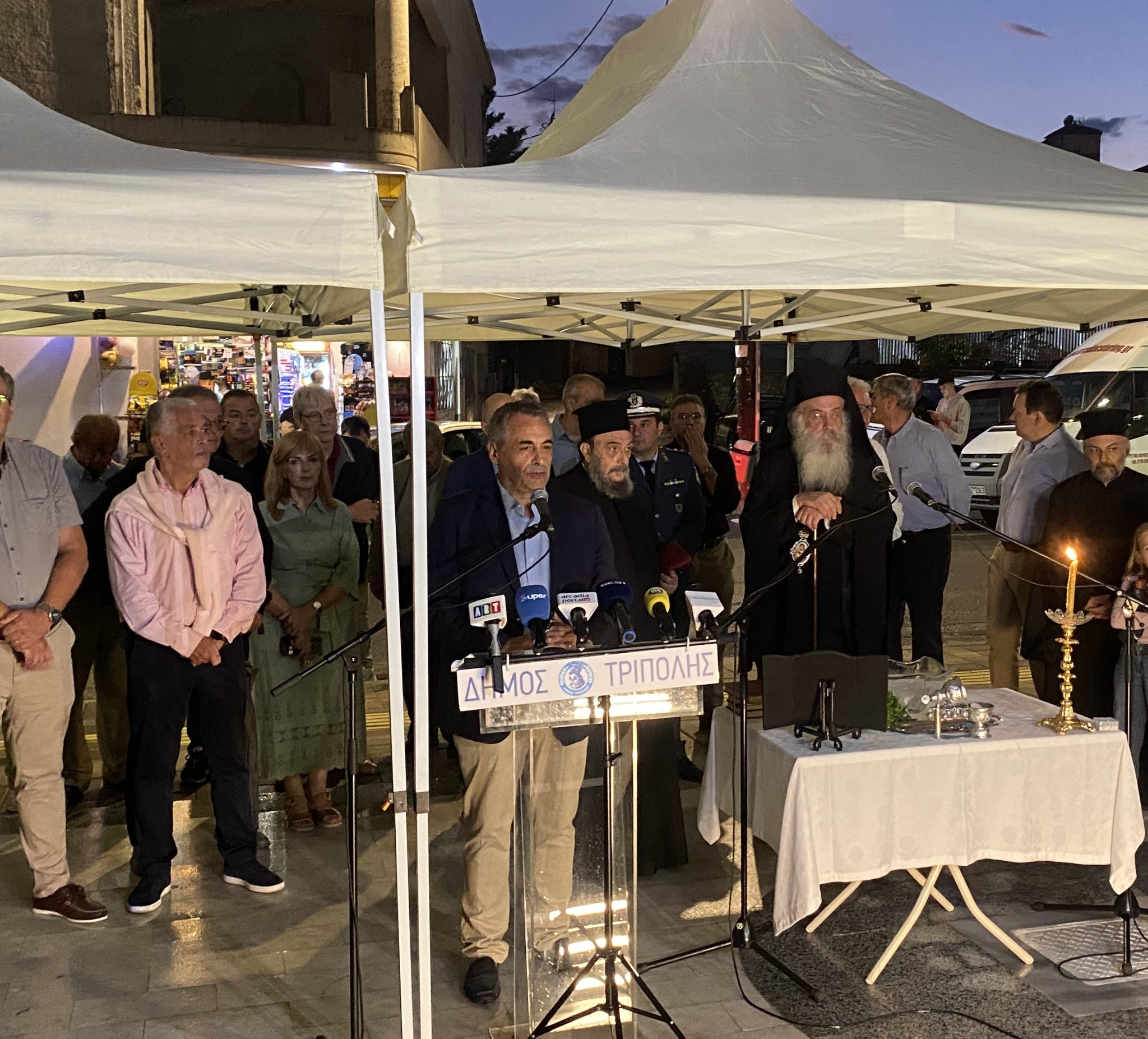 Στην τελετή Αγιασμού και των εγκαινίων συμμετείχε ο Μητροπολίτης Μαντινείας και Κυνουρίας Επιφάνιος. Στην εκδήλωση, εκτός της δημοτικής Αρχής, παρευρέθηκαν αιρετοί της Αυτοδιοίκησης, εκπρόσωποι σωματείων, συλλόγων, φορέων, ενώσεων και λοιπών θεσμικών και συνδικαλιστικών οργάνων. Χαιρέτησαν το έργο, ο αναπληρωτής περιφερειάρχη Χρήστος Λαμπρόπουλος και ο αντιπεριφερειάρχης Αρκαδίας, Κώστας Μανδρώνης. Χαιρετισμό απεύθυνε και ο πρόεδρος του τοπικού Πολιτιστικού Συλλόγου, κ. Κοντογιάννης.