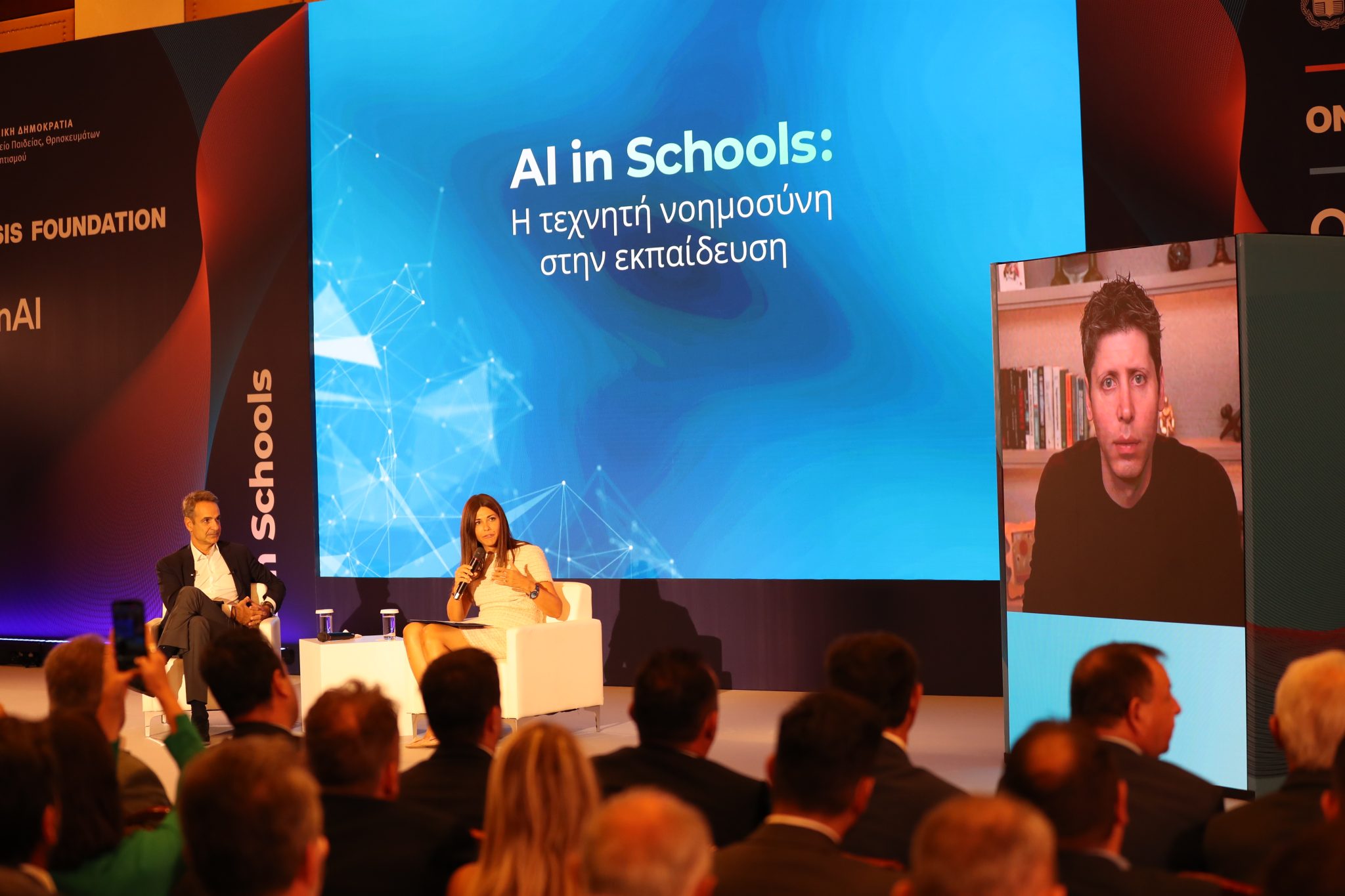 Η αξιοποίηση της Τεχνητής Νοημοσύνης στα σχολεία ήταν το θέμα εκδήλωσης που διοργάνωσε το Υπουργείο Παιδείας σε ξενοδοχείο της Θεσσαλονίκης, όπου και συνομίλησε ο Κυριάκος Μητσοτάκηςμε τον Sam Altman.