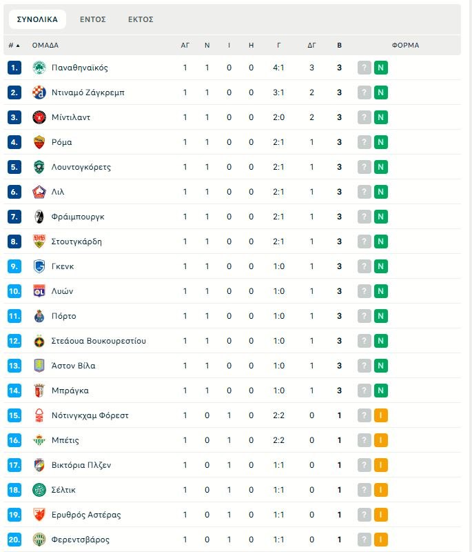 Γκολ και θέαμα στην πρώτη αγωνιστική της League Phase του Europa League.