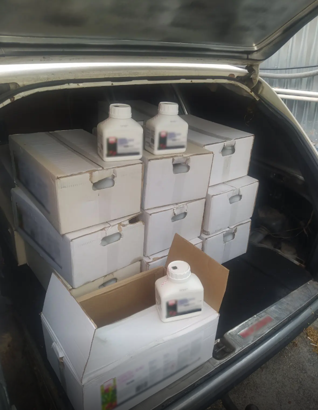 - -165- λίτρα και -7- κιλά πλαστών φυτοπροστατευτικών προϊόντων,