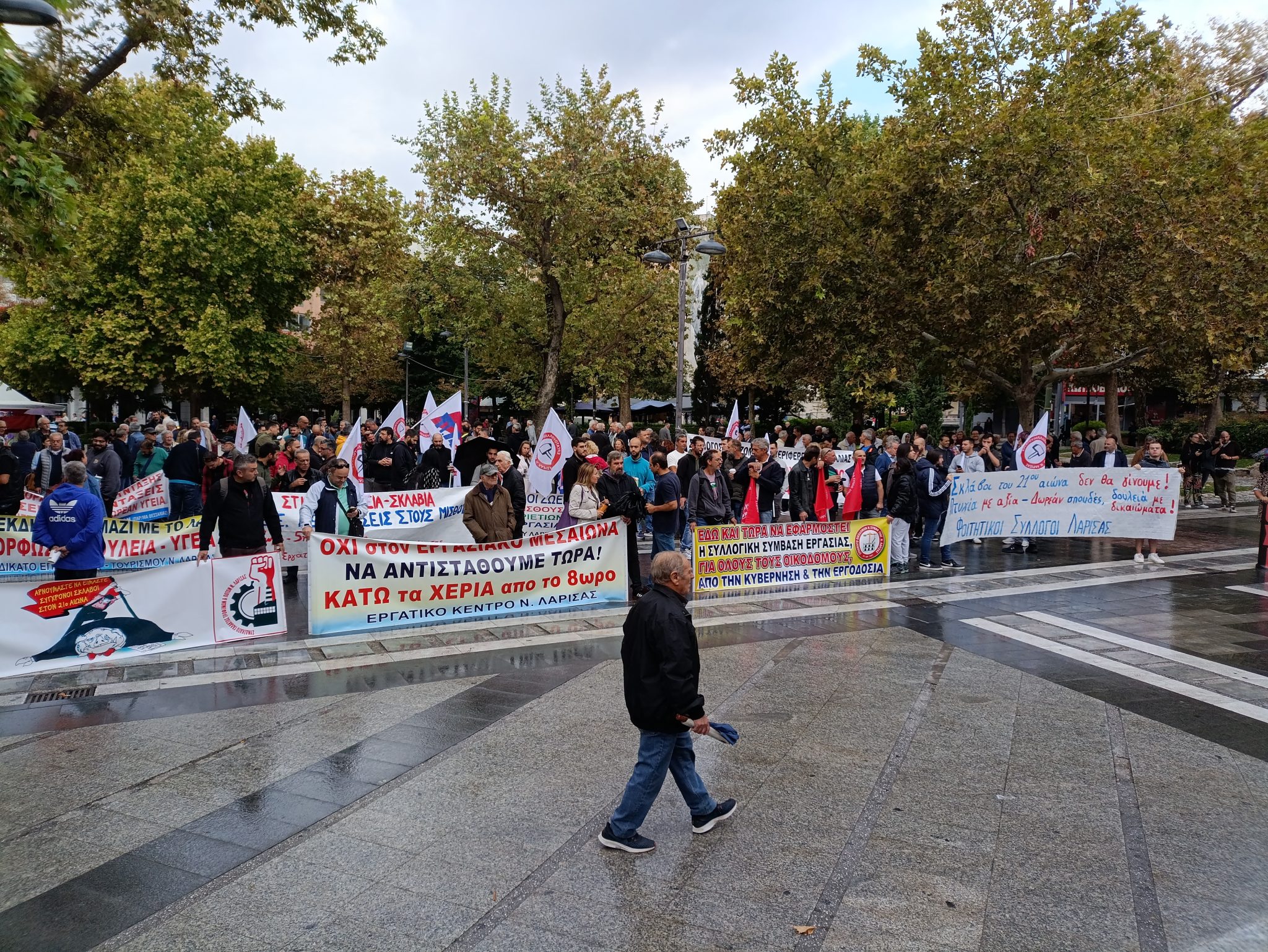 Πλήθος κόσμου και εργαζομένων από διάφορους κλάδους του ιδιωτικού και δημόσιου τομέα, συμμετείχαν στη σημερινή απεργιακή κινητοποίηση στην κεντρική πλατεία της Λάρισας, εκφράζοντας την αντίθεσή τους στο νέο εργασιακό νομοσχέδιο της κυβέρνησης.