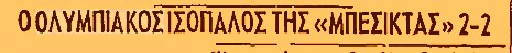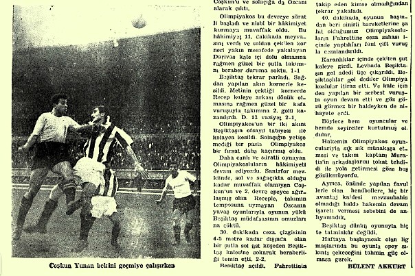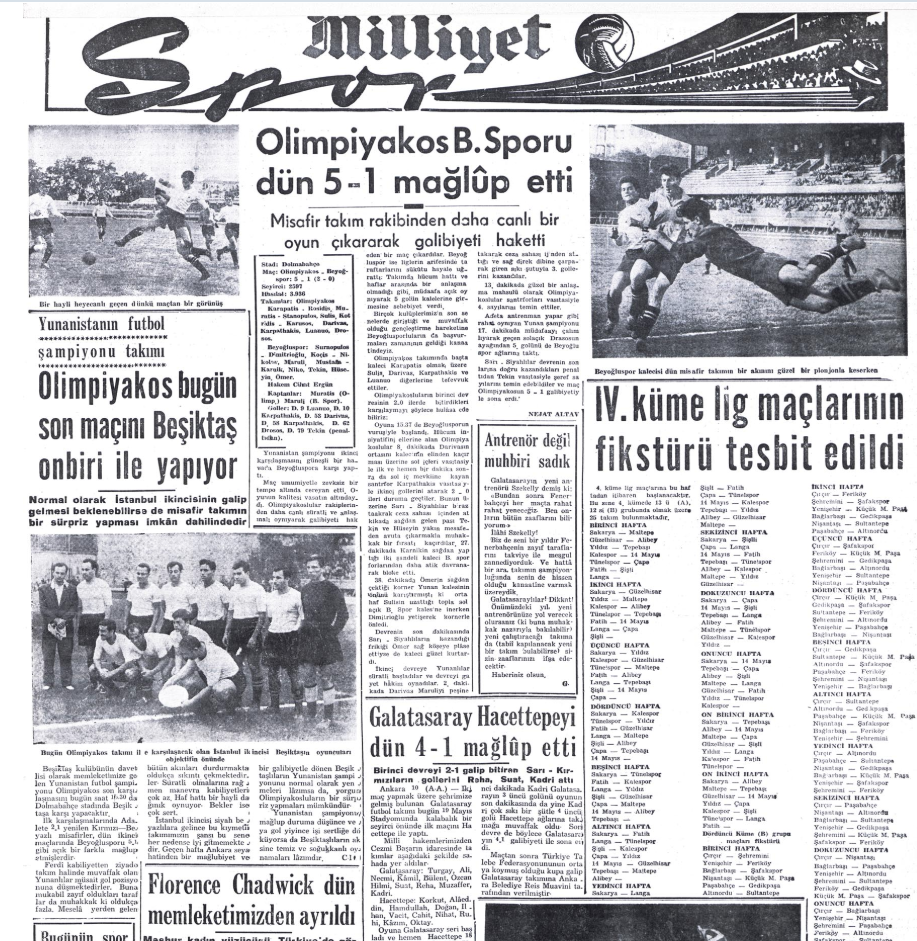 Στις 13-10-1953 διαβαζουμε ότι επέστρεψε ο Ολυμπιακός και ο τρίτος του αγώνας με την Μπεσίκτας, που είχε σαφώς μεγαλύτερη δυναμική από την Ανταλέτ και την Πέρα Κλούμπ, τελείωσε ισόπαλος με 2-2.