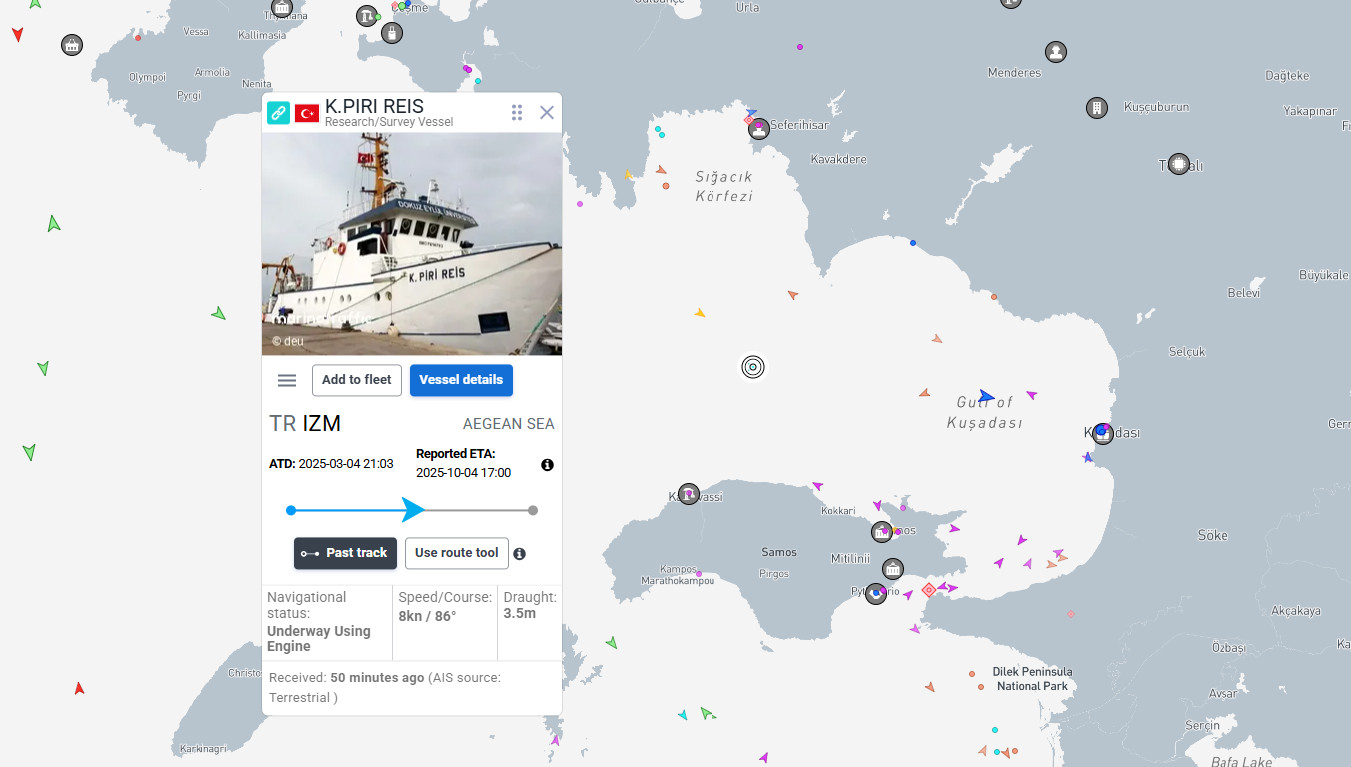 Σε διεθνή ύδατα δυτικά των Ψαρών πλέει από το πρωί της Δευτέρας (6/10) το ερευνητικό σκάφος Πίρι Ρέις, σε συνέχεια της NAVTEX που έχει εκδώσει η Άγκυρα για έρευνες από τις 4-14 Οκτωβρίου.