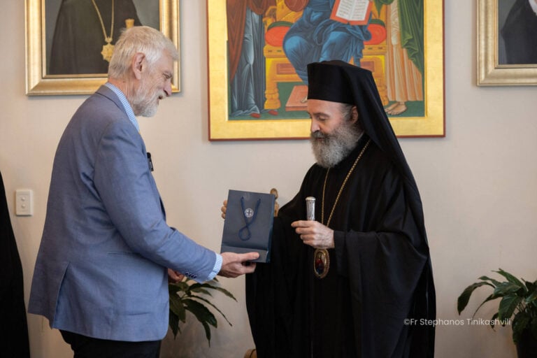 Ο Αρχιεπίσκοπος Μακάριος υποδέχεται τον υφυπουργό κ. Λοβέρδο στην έδρα της Αρχιεπισκοπής. Φωτογραφία: Κ. Πετρόπουλος/ Αρχιεπισκοπή Αυστραλίας