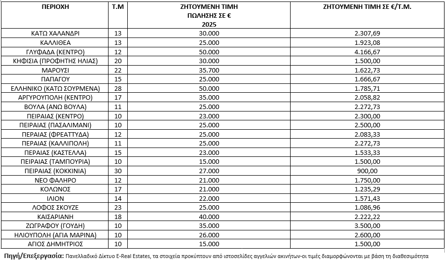 Οι ζητούμενες τιμές πώλησης θέσεων στάθμευσης σε 24 περιοχές της Αθήνας