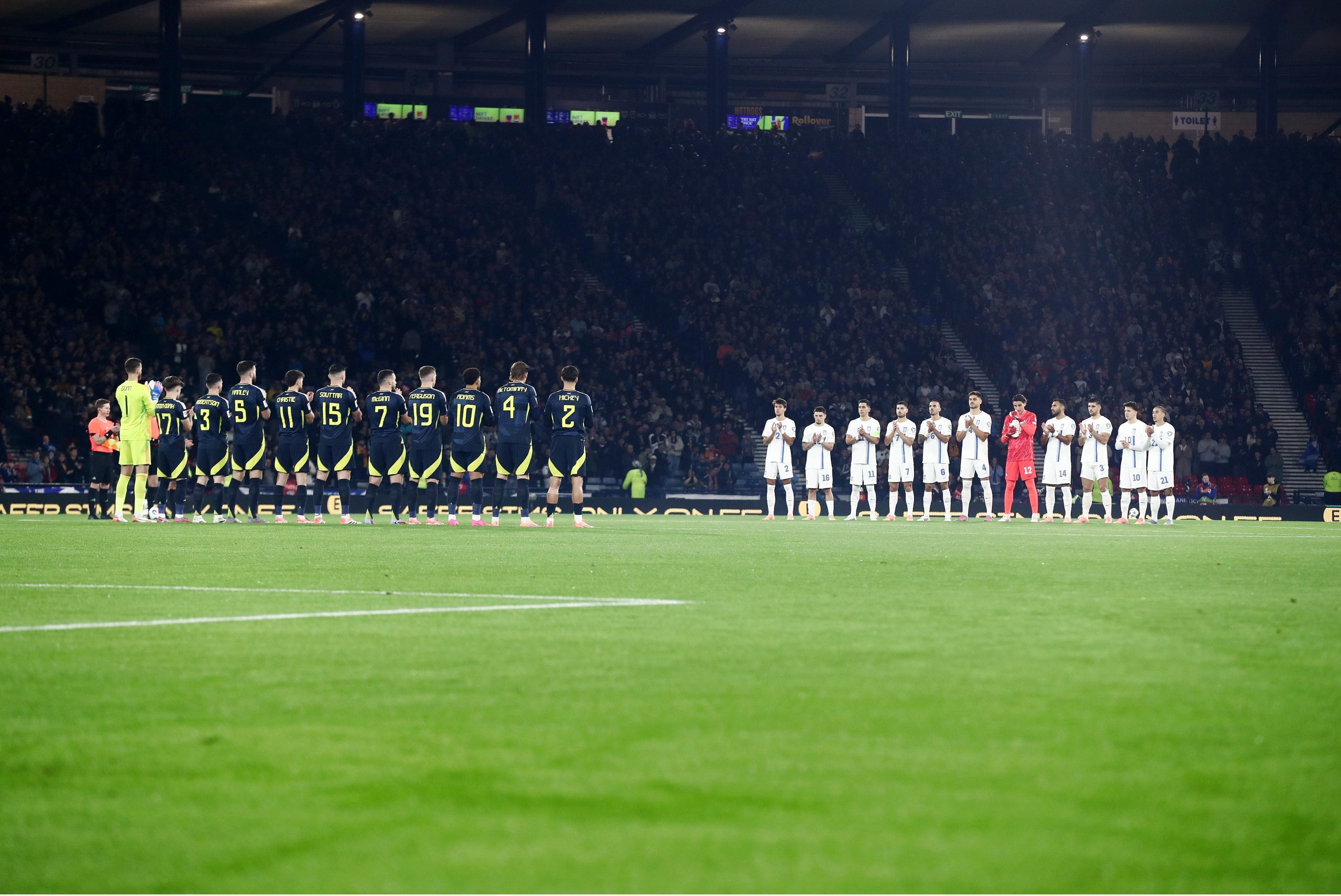 Η Εθνική Ελλάδας αντιμετωπίζει την Σκωτία στο «Χάμπντεν Παρκ» για την 3η αγωνιστική των προκριματικών του Παγκοσμίου Κυπέλλου. Οι παίκτες της Εθνικής πριν τον αγώνα τίμησαν τη μνήμη του αδικοχαμένου διεθνή Τζορτζ Μπάλντοκ.