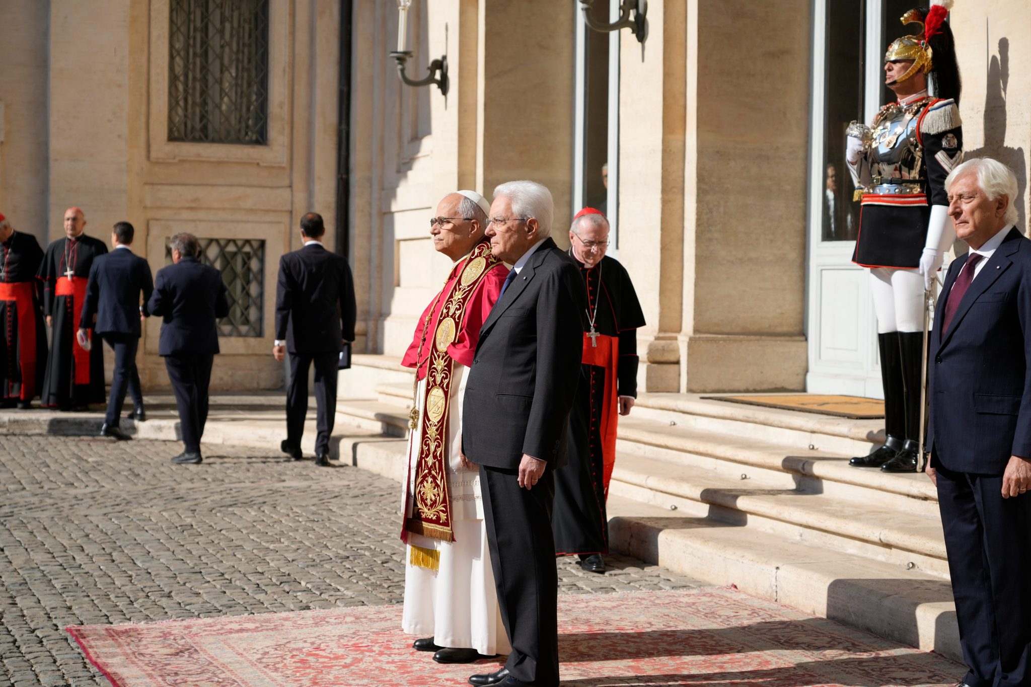 Σε εγκάρδιο κλίμα πραγματοποιήθηκε σήμερα το πρωί η θεσμική επίσκεψη του Πάπα Λέοντα ΙΔ’ στον Ιταλό ΠτΔ Σέρτζιο Ματαρέλα στη Ρώμη.