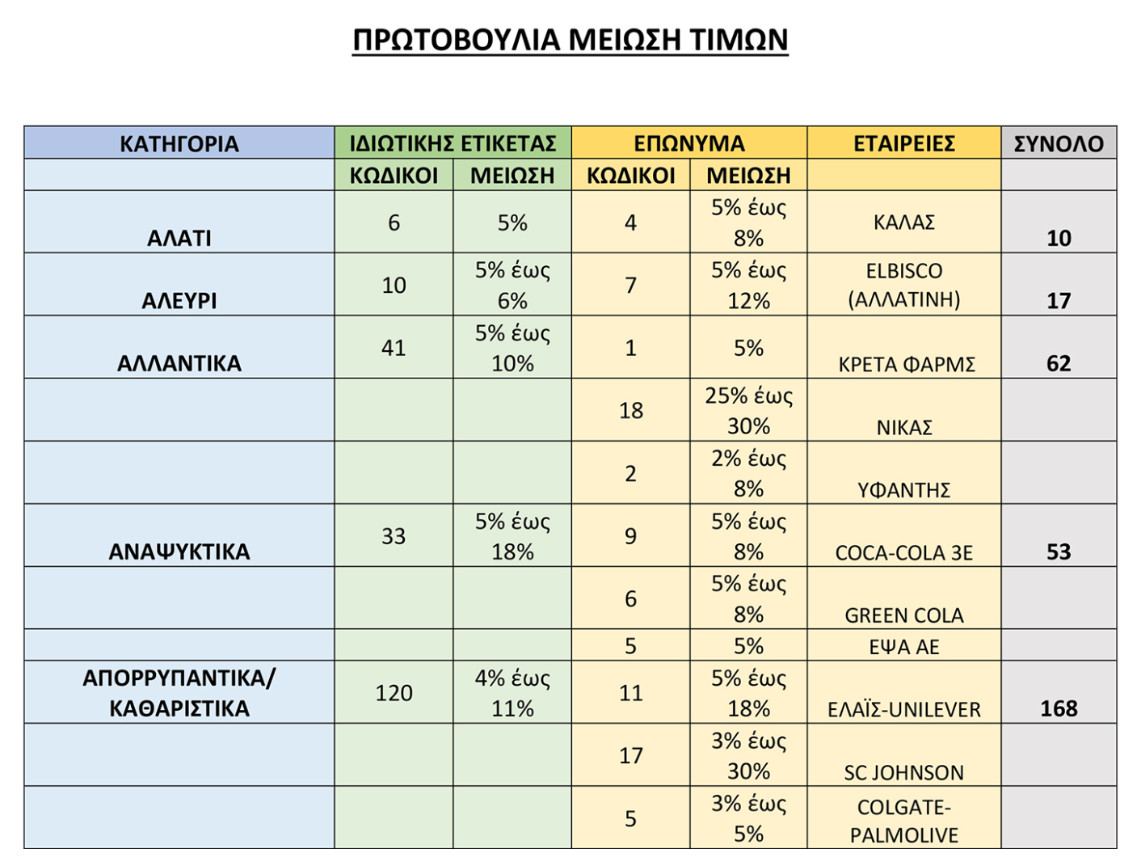 Σε αυτό το πλαίσιο, σήμερα ανακοινώνεται από τις αλυσίδες του λιανεμπορίου και τους προμηθευτές μεσοσταθμική μείωση 8% σε πάνω από 2.000 κωδικούς σημαντικών προϊόντων.