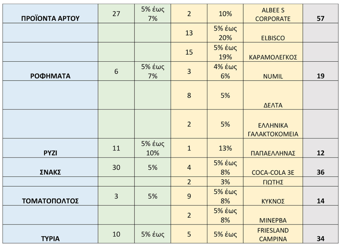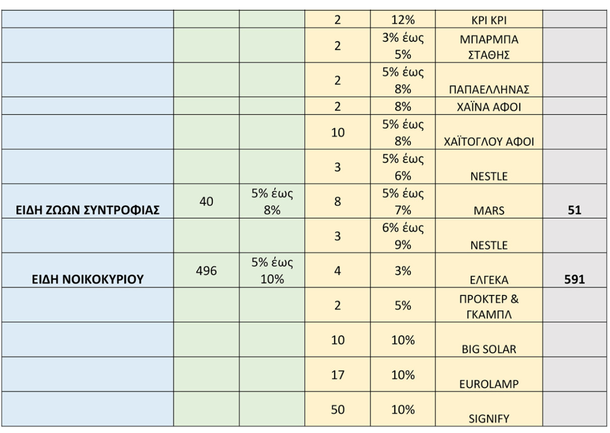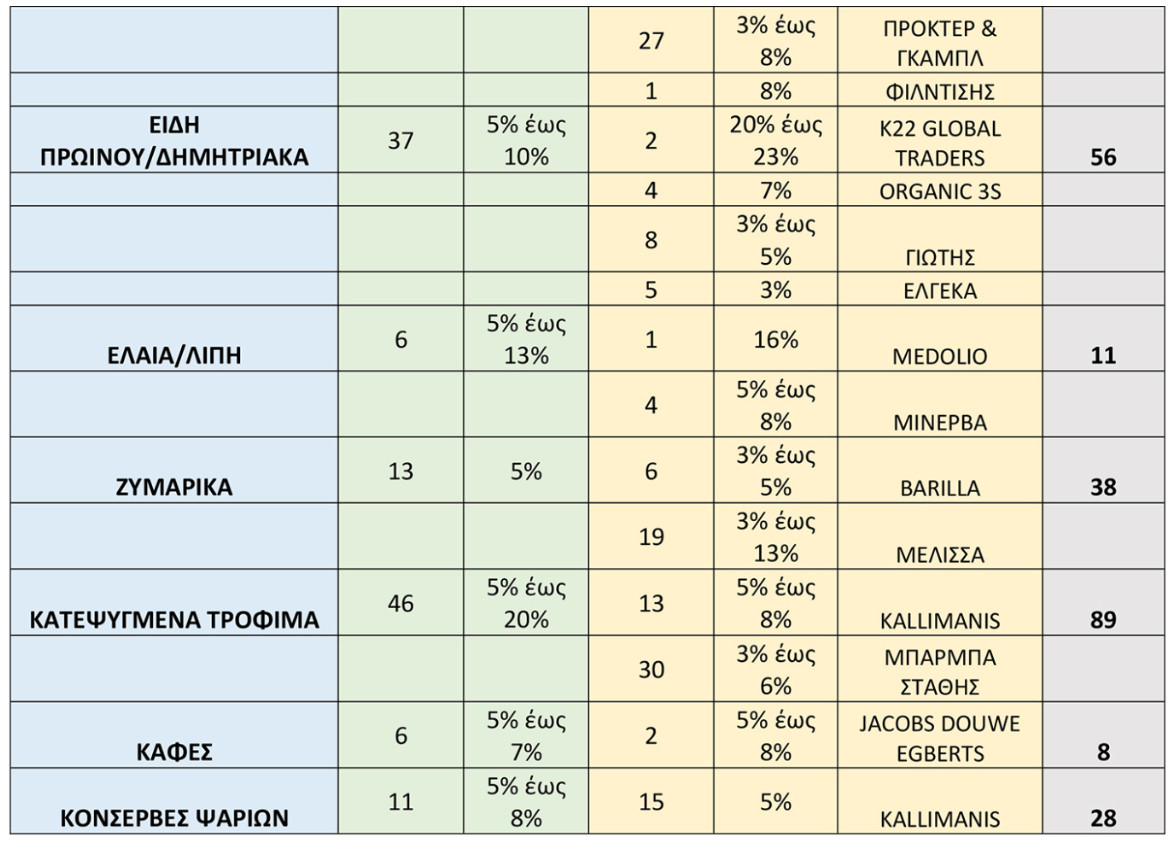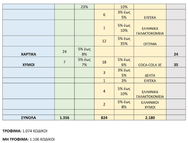 Αναλυτικά ο πλήρης κατάλογος των κωδικών προϊόντων