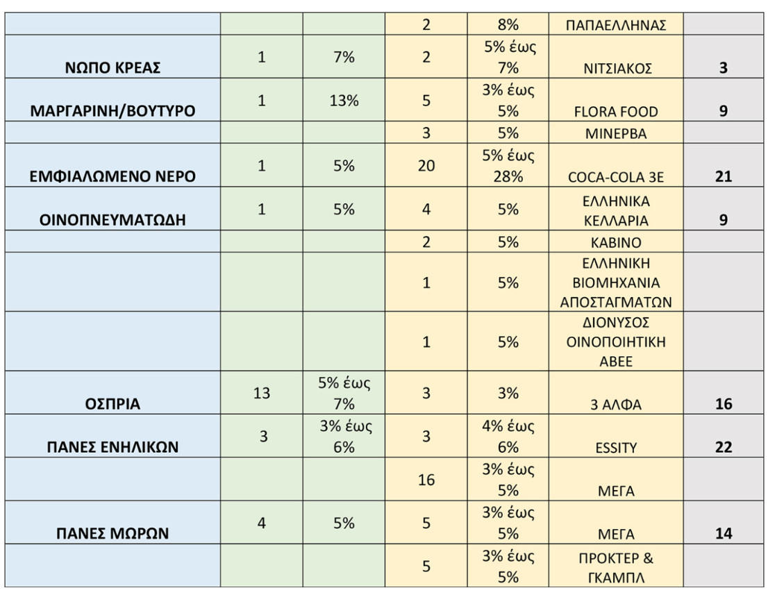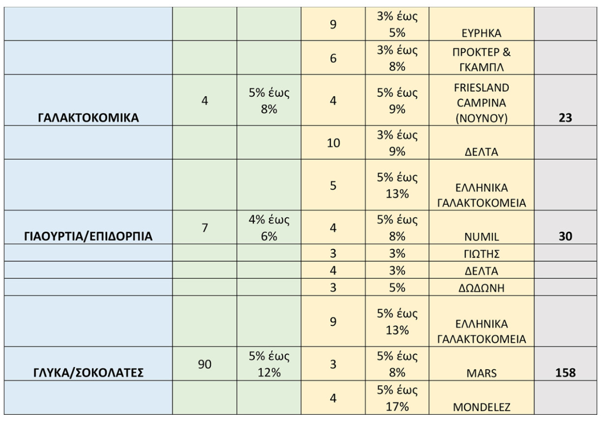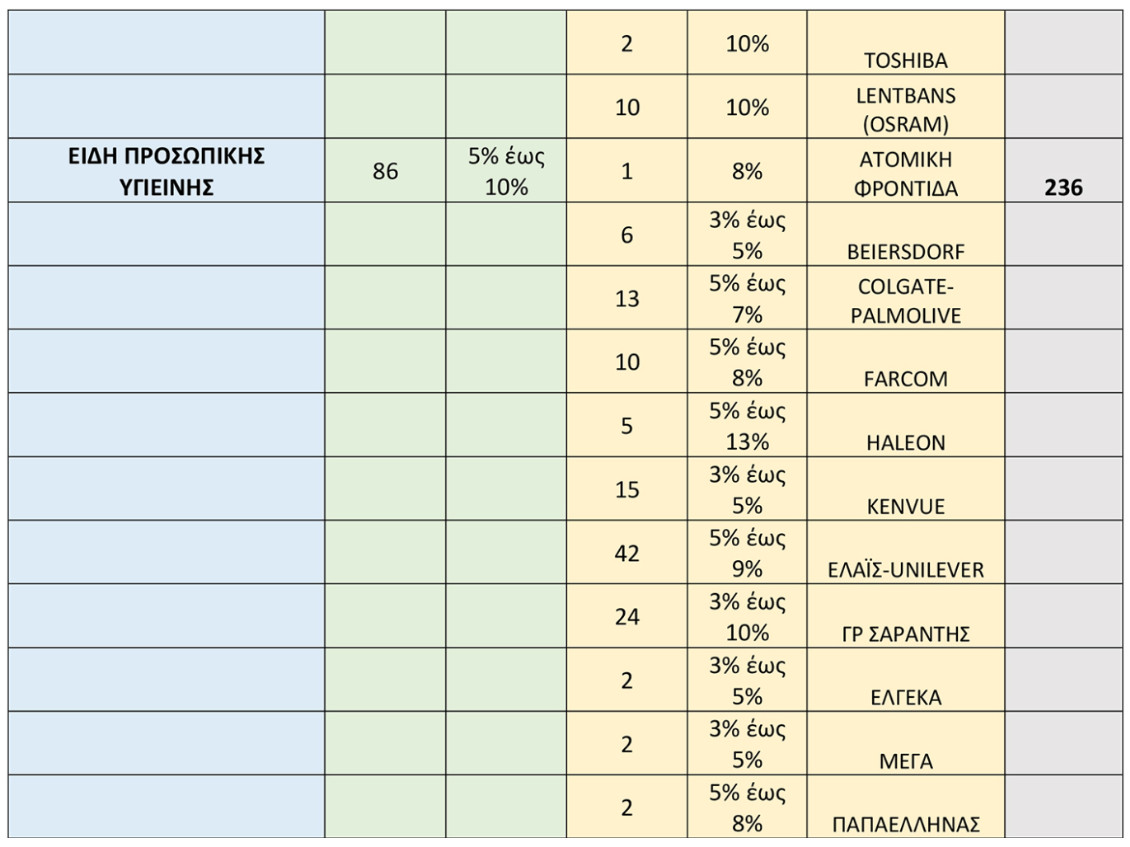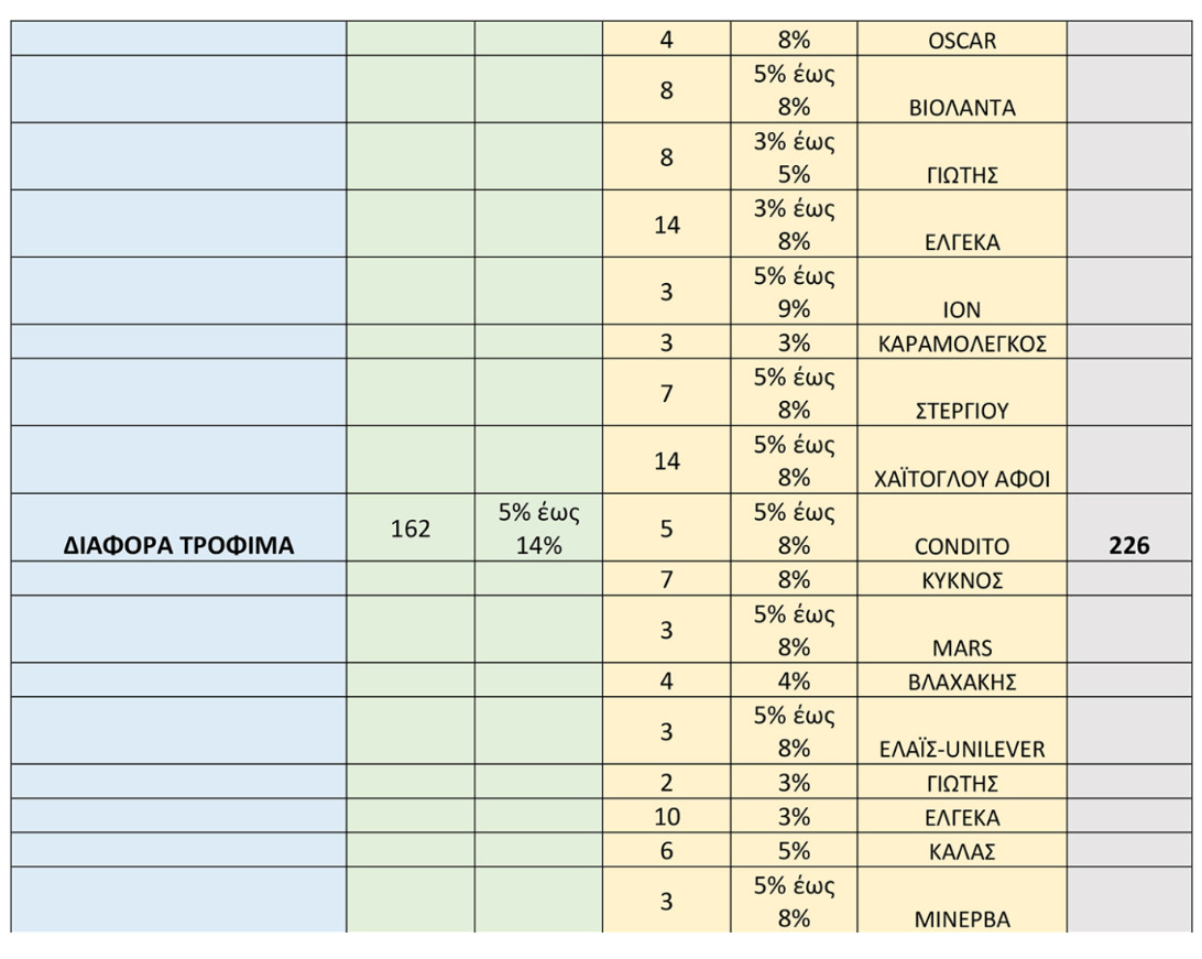 Αναλυτικά ο πλήρης κατάλογος των κωδικών προϊόντων