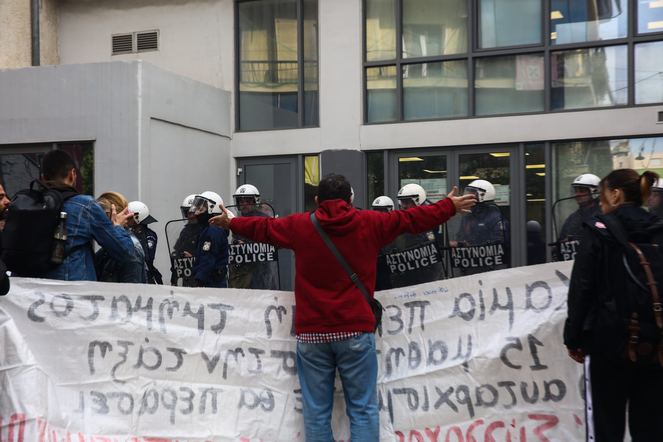Ακόμη, σύμφωνα με πηγές της ΕΛ.ΑΣ, που επικαλείται το ΑΠΕ – ΜΠΕ, λίγο μετά τις 10:00 μέλη του συλλόγου γονέων του 36ου δημοτικού σχολείου Αθήνας και από τις συλλογικότητες «Όχι μετρό στην πλατεία Εξαρχείων» και «Ανοιχτή συνέλευση υπεράσπισης του λόφου Στρέφη» στην προσπάθεια τους να εισέλθουν στο κτίριο επιτέθηκαν στις αστυνομικές δυνάμεις, που τους απώθησαν κάνοντας χρήση χημικών και χειροβομβίδων κρότου-λάμψης.
