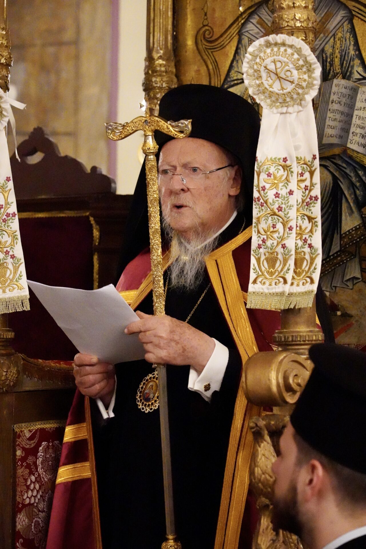 Το πρωί της ίδιας ημέρας, ο Οικουμενικός Πατριάρχης παρέστη συμπροσευχόμενος κατά τη θεία λειτουργία, που τελέστηκε, στον Πατριαρχικό Ναό του Αγίου Γεωργίου, με την ευκαιρία της 34ης επετείου από την εκλογή του. Αργότερα, το μεσημέρι, δέχθηκε τις ευχές της εν Τουρκία Ιεραρχίας του Θρόνου και παρακάθισαν όλοι στο εόρτιο γεύμα στο Πατριαρχείο.