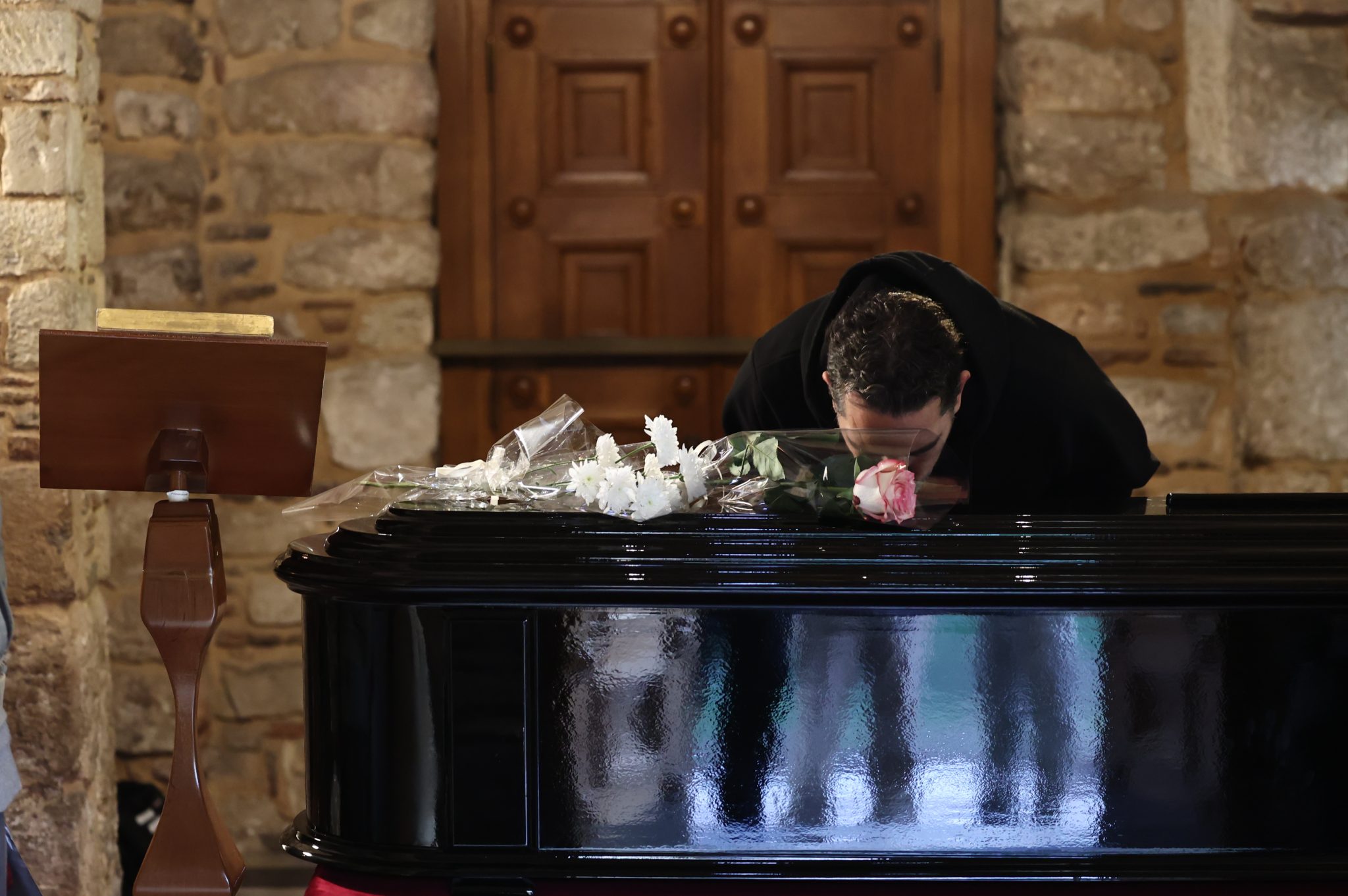Ενας άλλος κύριος εναπόθεσε μια φιγουρα του Καραγκιόζη στο πάτωμα δίπλα στο φέρετρο. «Κείνο που με τρώει, κείνο που με ζώσει, Νιόνιο μου» έγραψε πάνω.