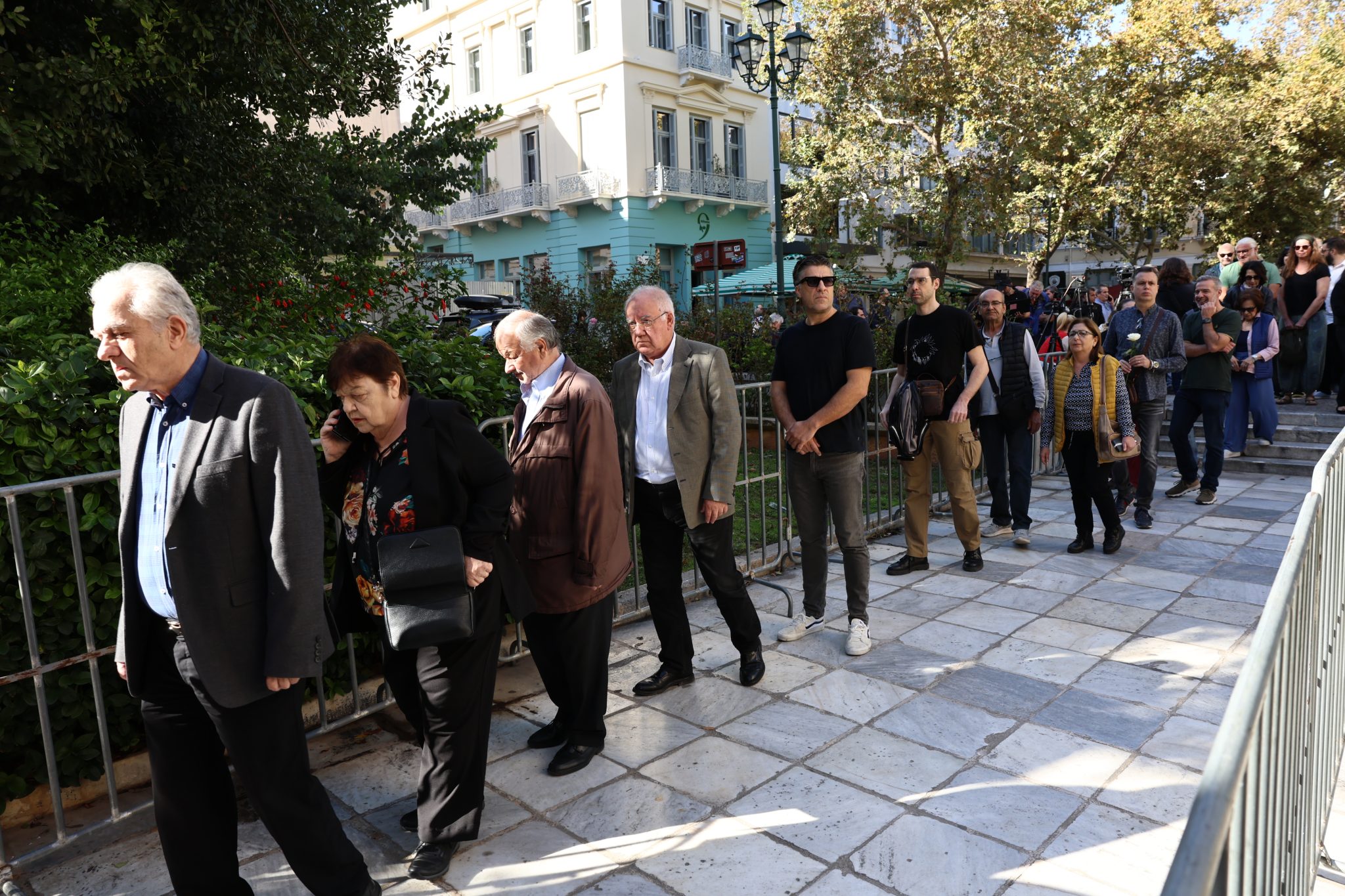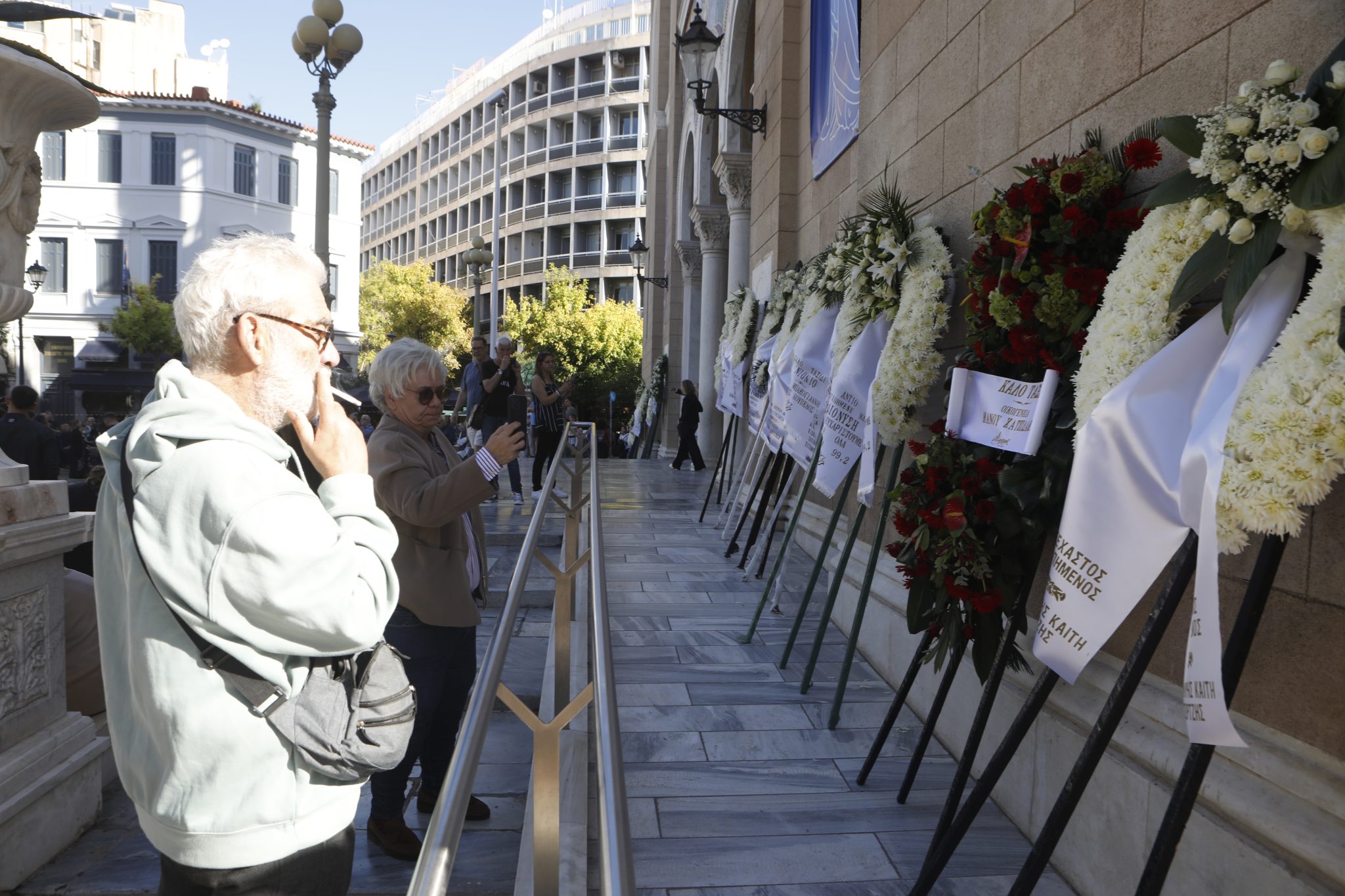 Σε κλίμα συγκίνησης εκατοντάδες άνθρωποι κάθε ηλικίας έχουν συγκεντρωθεί στη Μητρόπολη Αθηνών, περιμένοντας υπομονετικά με ένα λουλούδι στο χέρι για να απευθύνουν το δικό τους χαιρετισμό με ένα νεύμα, ένα δάκρυ, ένα άγγιγμα στο σημείο της καρδιά τους, σαν ένα ευχαριστώ στον άνθρωπο που αγκάλιασε με τις μελωδίες του τις αναμνήσεις τους, και για τον καθένα τους υπήρξε ξεχωριστός, με τόσο διαφορετικό τρόπο.