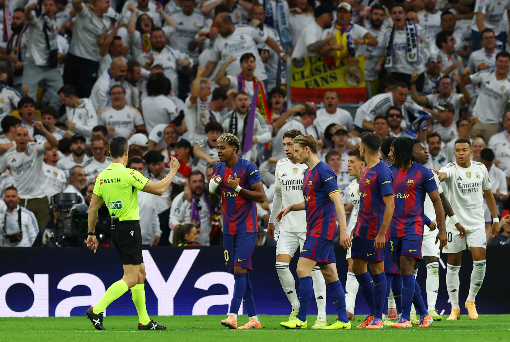 Η Μπαρτσελόνα έδειξε να “πατάει” καλύτερα στο ματς, έχοντας τη γνωστή της καλή κυκλοφορία μπάλας. Η Ρεάλ Μαδρίτης ήταν όμως αυτή που στο πρώτο 15λεπτο “γκρίνιαξε” για δυο αποφάσεις της διαιτησίας. Στο 2′ οι γηπεδούχοι κέρδισαν πέναλτι, για μαρκάρισμα του Γιαμάλ στον βινίσιους, με τον διαιτητή να το ακυρώνει μετά από onfield review.