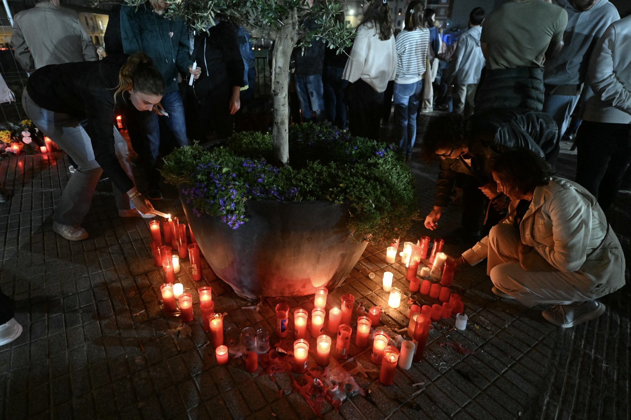Σε έναν από τους κεντρικούς δρόμους, μία φαρμακοποιός τοποθέτησε στο έδαφος μπροστά από το κατάστημά της μια σειρά κόκκινα και λευκά κεριά για να αποτίσει φόρο τιμής στα θύματα.
