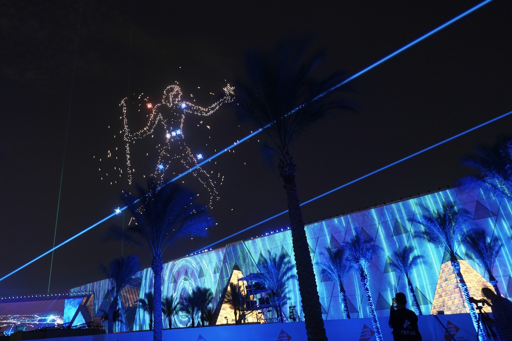 Σε ένα φαντασμαγορικό υπερθέαμα, ο νυχτερινός ουρανός φωτίζεται από εκατοντάδες πυροτεχνήματα, ενώ drone σχηματίζουν φιγούρες αιγυπτιακών θεοτήτων και βασιλέων. Έντονο ήταν το διαπολιτισμικό αλλά και το θρησκευτικό στοιχείο στην τελετή, η οποία είχε και ελληνικό άρωμα με τις συμμετοχές του Έλληνα βιολιστή Κώστα Παναγιωτίδη, Κορυφαίου Α’ στην ορχήστρα της Εθνικής Λυρικής Σκηνής και της Ελληνίδας πρίμα μπαλαρίνας της Εθνικής Όπερας του Καΐρου Αντιγόνης Τσιούλη. Το μεγαλύτερο αρχαιολογικό μουσείο στον κόσμο άνοιξε τις πύλες του έπειτα από 25 χρόνια εργασιών.