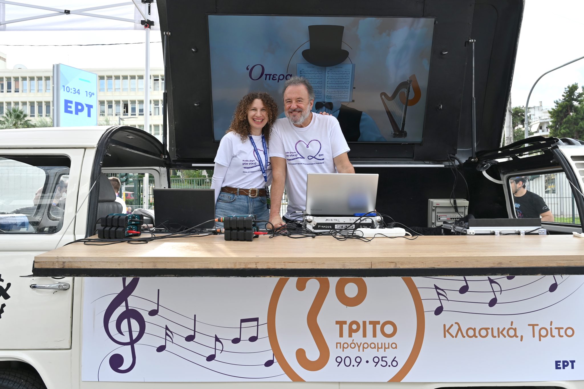 Τους συνόδευαν οι μουσικές επιλογές παραγωγών του Kosmos από το ειδικό διαμορφωμένο βαν στο ύψος του αγάλματος του Δρομέα.